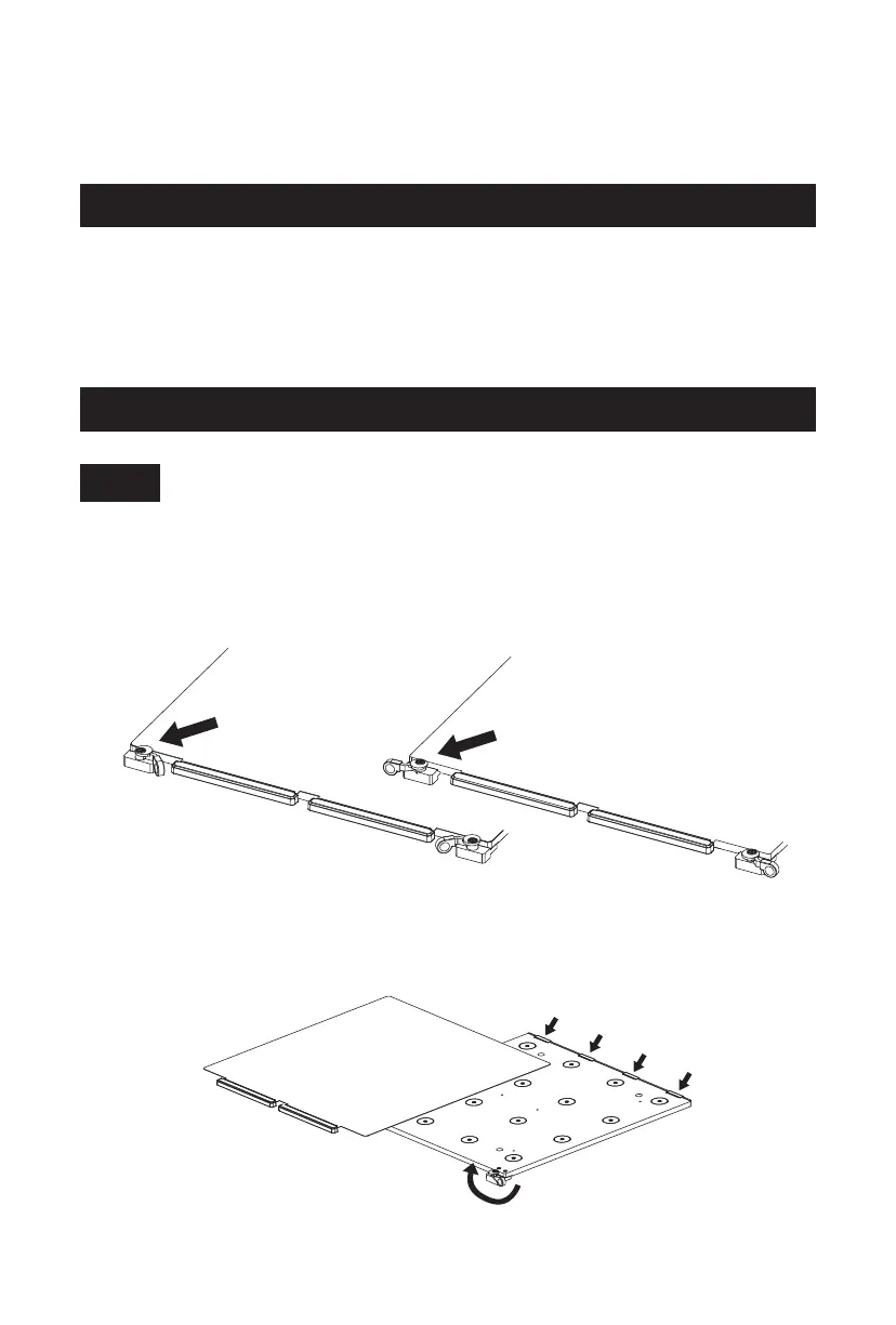 1. 将柔性钢板安装到平台板上,后端插入四个弹扣 [注意是插入弹扣的内侧];