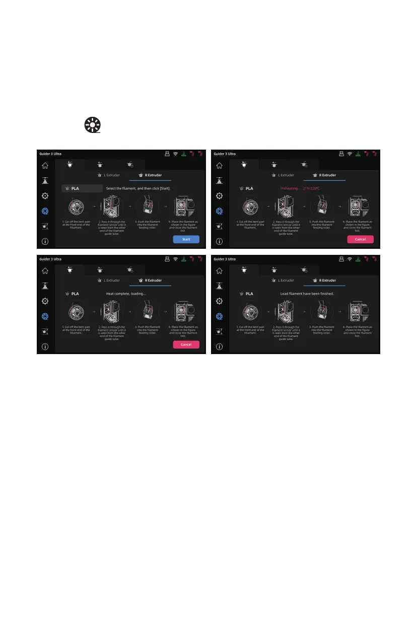 5. Click the [ ] icon, enter the [Filament loading] interface, select the corresponding