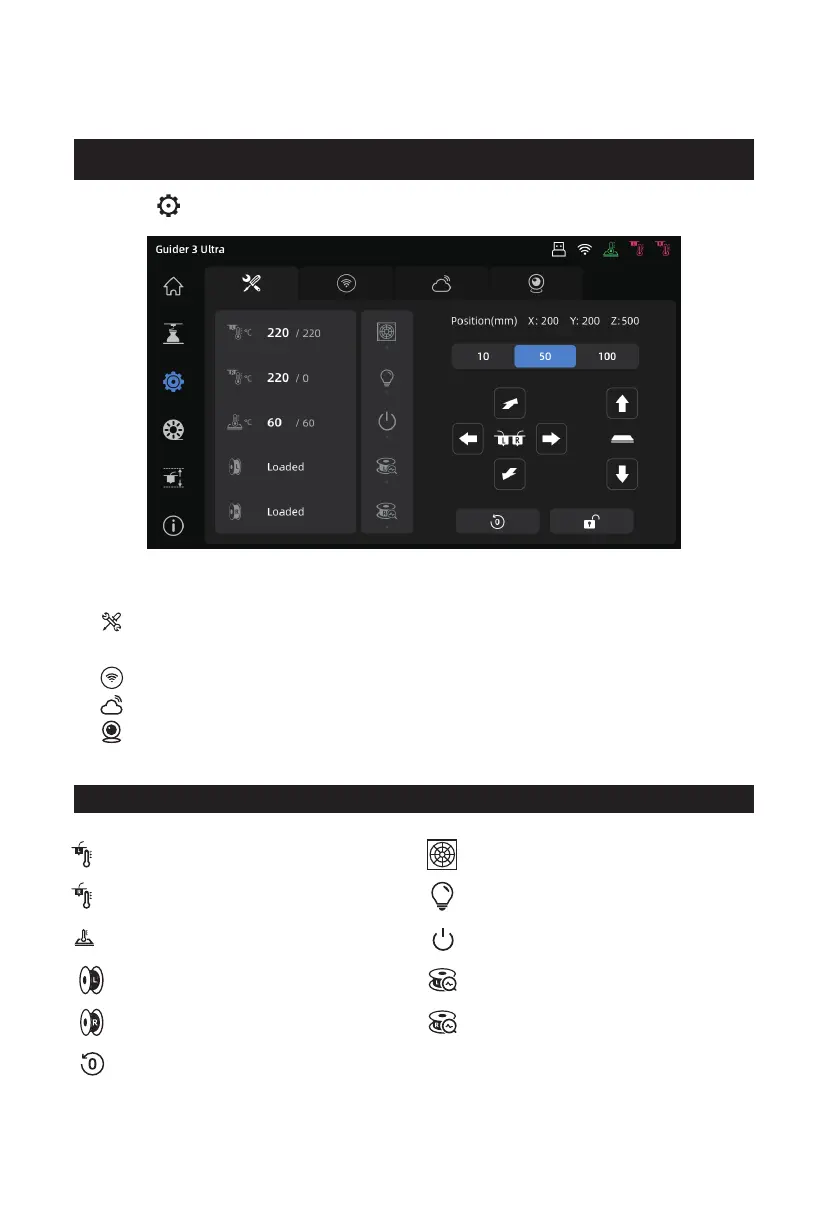 [Move] Extruder; Platform; Chamber Preheating; Fan Settings;