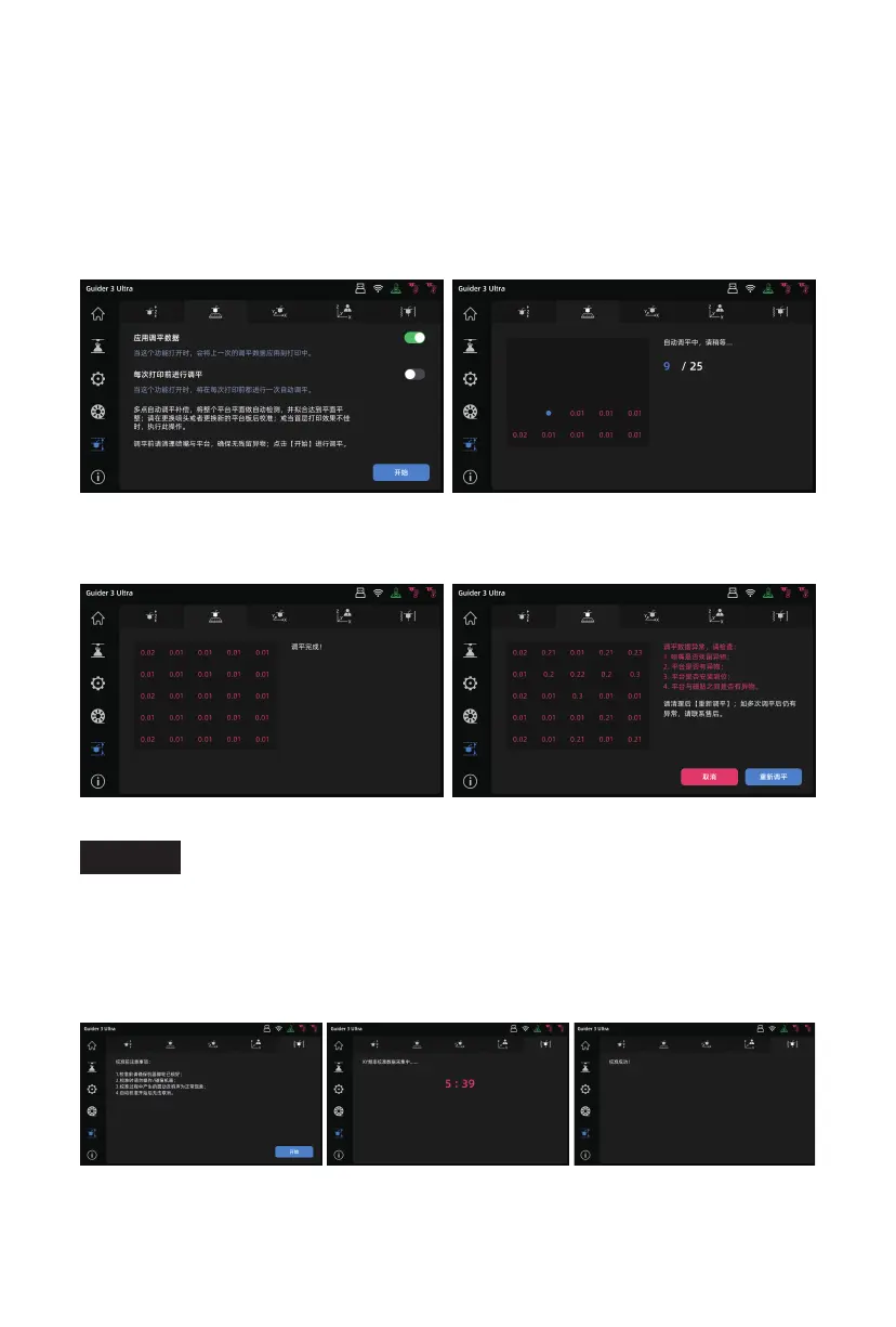 重新检查设备,确认后点击[重新调平],设备会再次进行调平工作。