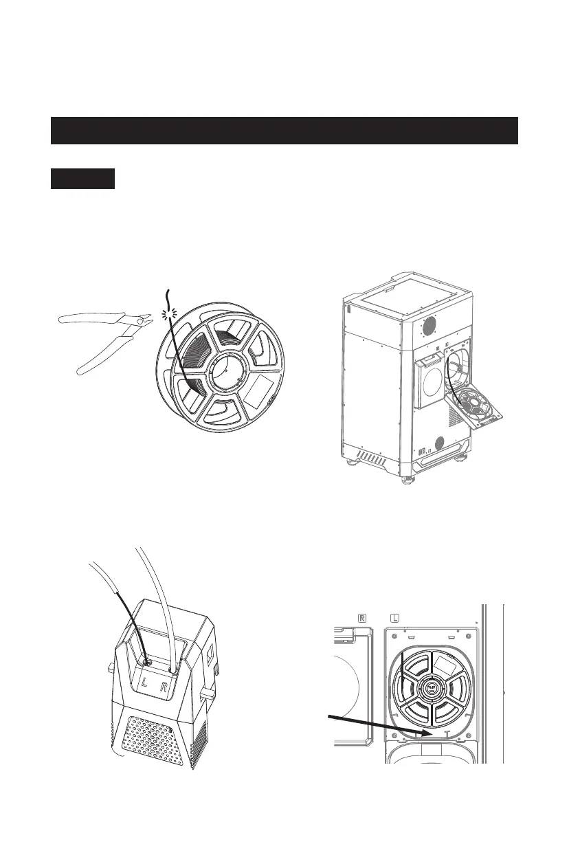 装载丝料时,请注意喷头、导丝管和耗材舱上左、右对应的标贴提示。