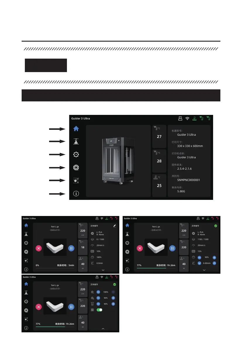Flashforge Guider 3 Ultra - 主界面; 设备操控界面简介