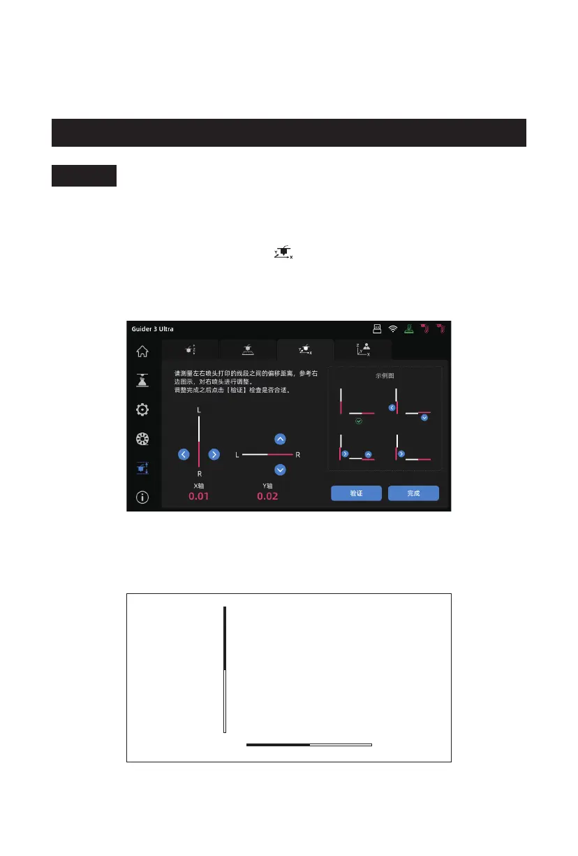 3. 调整完后点击[验证]按钮再次打印测试线,如果还存在偏移情况,请重新执行步骤“4.3-2”