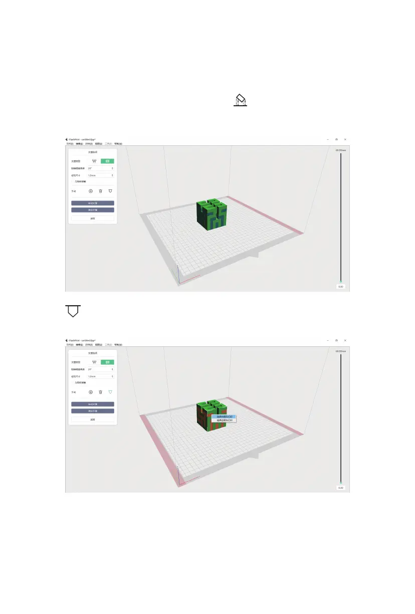 5. 打开FlashPrint软件后载入模型,在软件界面点击 [支撑]图标,选择支撑类型。