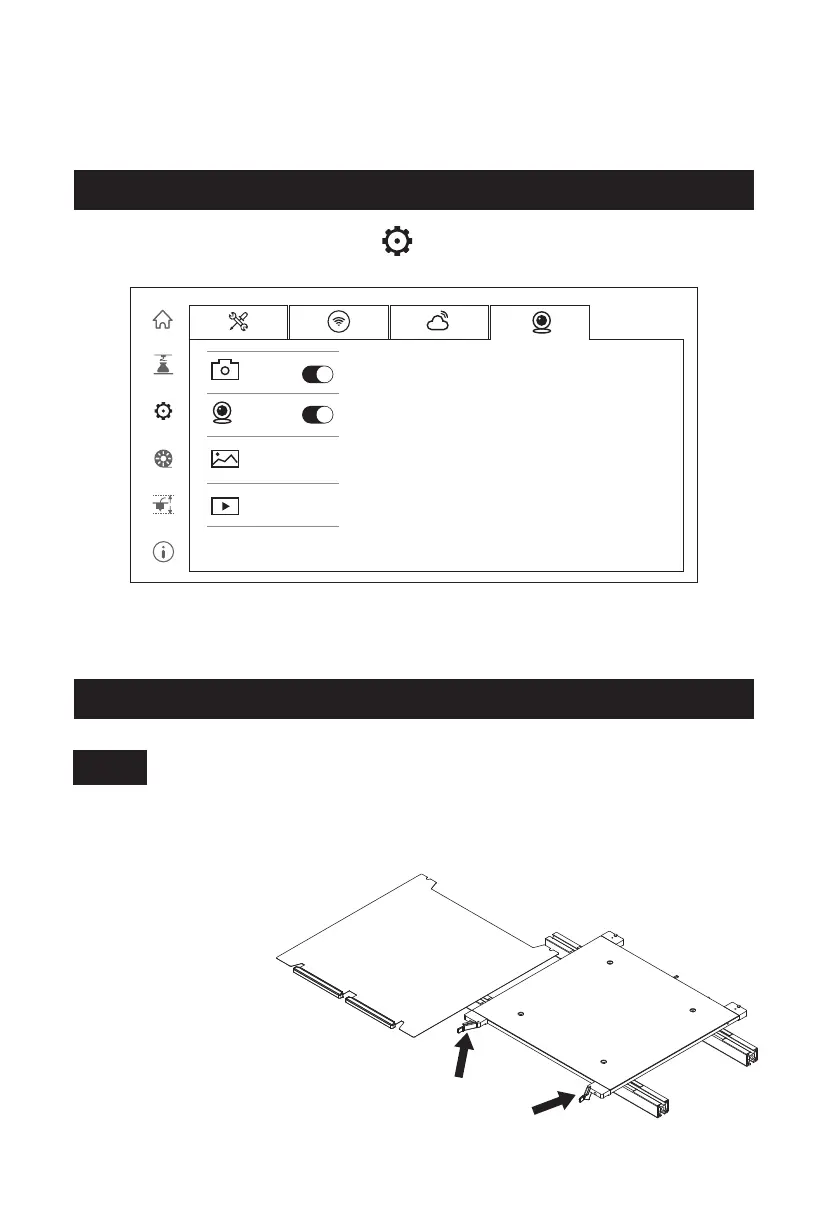 1. 打开摄像头开关,在触控屏上点击图标 [设置] - 进入[摄像头]界面,将[相机]和[视频]