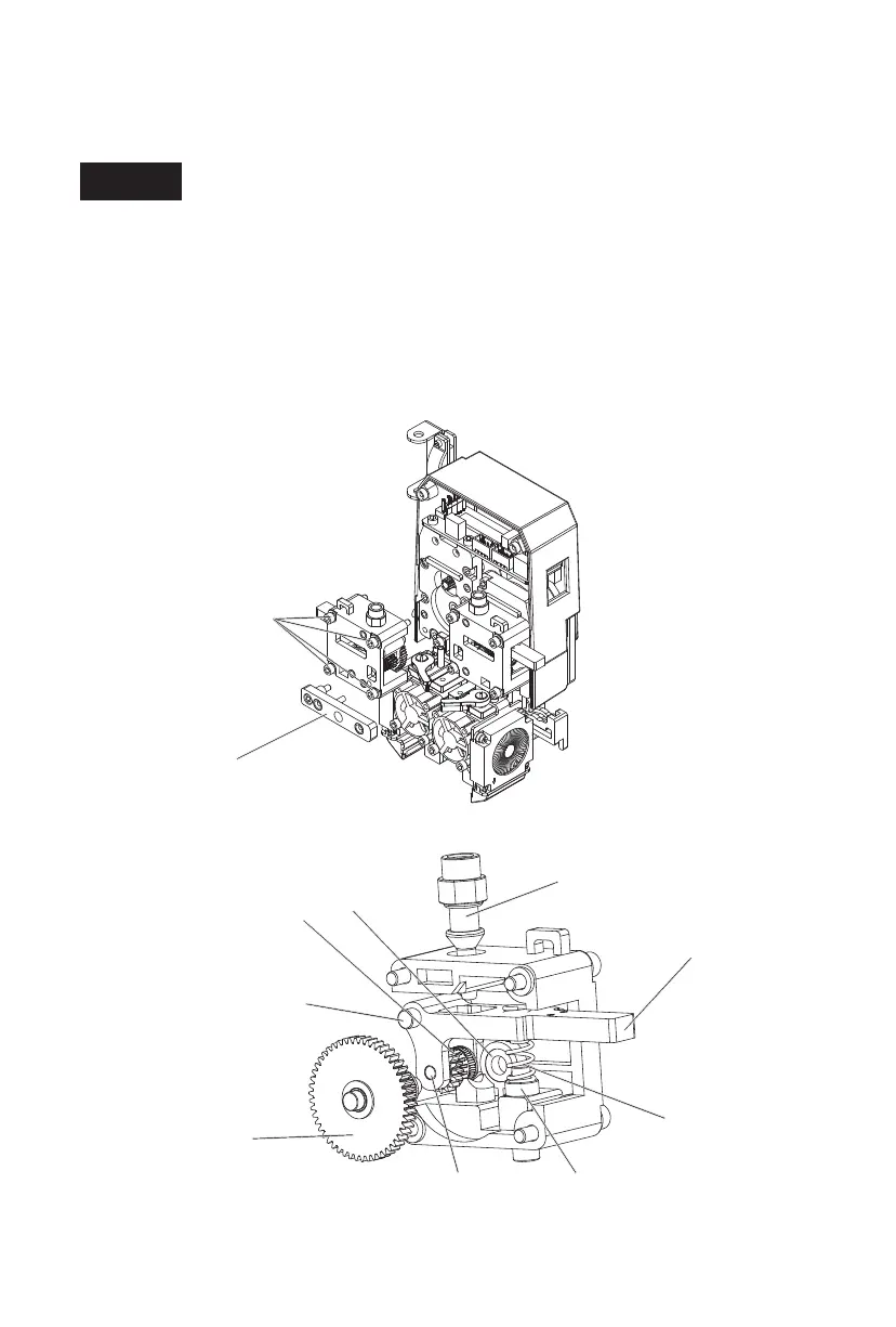 卡料取出后重新安装挤出盒(下图为挤出盒零件示意图)。注意安装挤出盒时,可