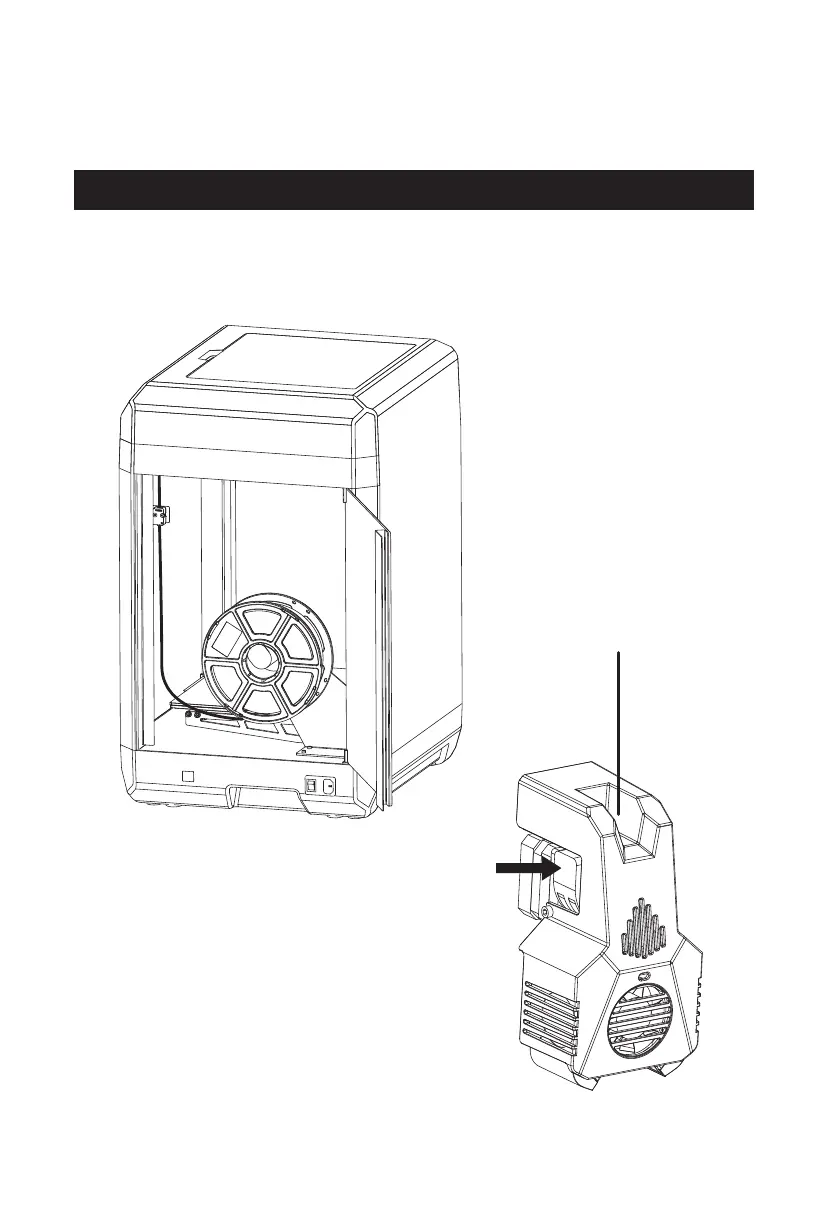 1. 打开丝料舱门,将丝料挂到丝料架上,按照顺时针方向穿过舱内左上方对应的丝料传感器,