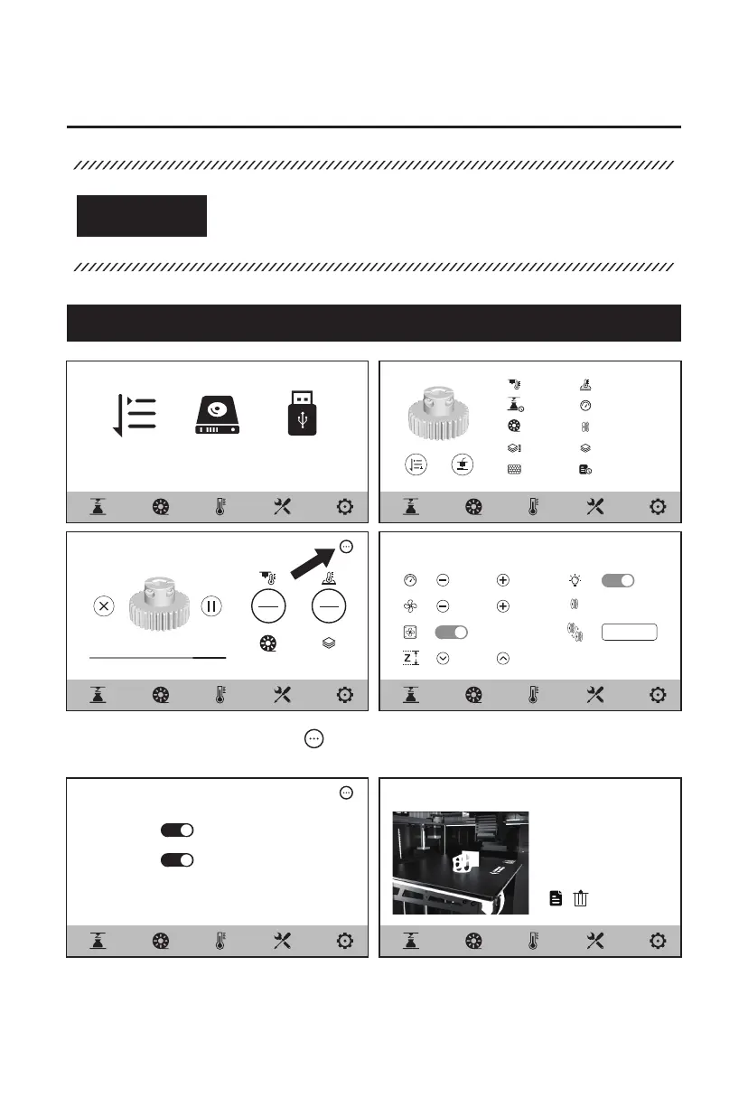 打印时可进行部分参数调整。 点击 图标可进行打印速度,风扇,灯的控制。