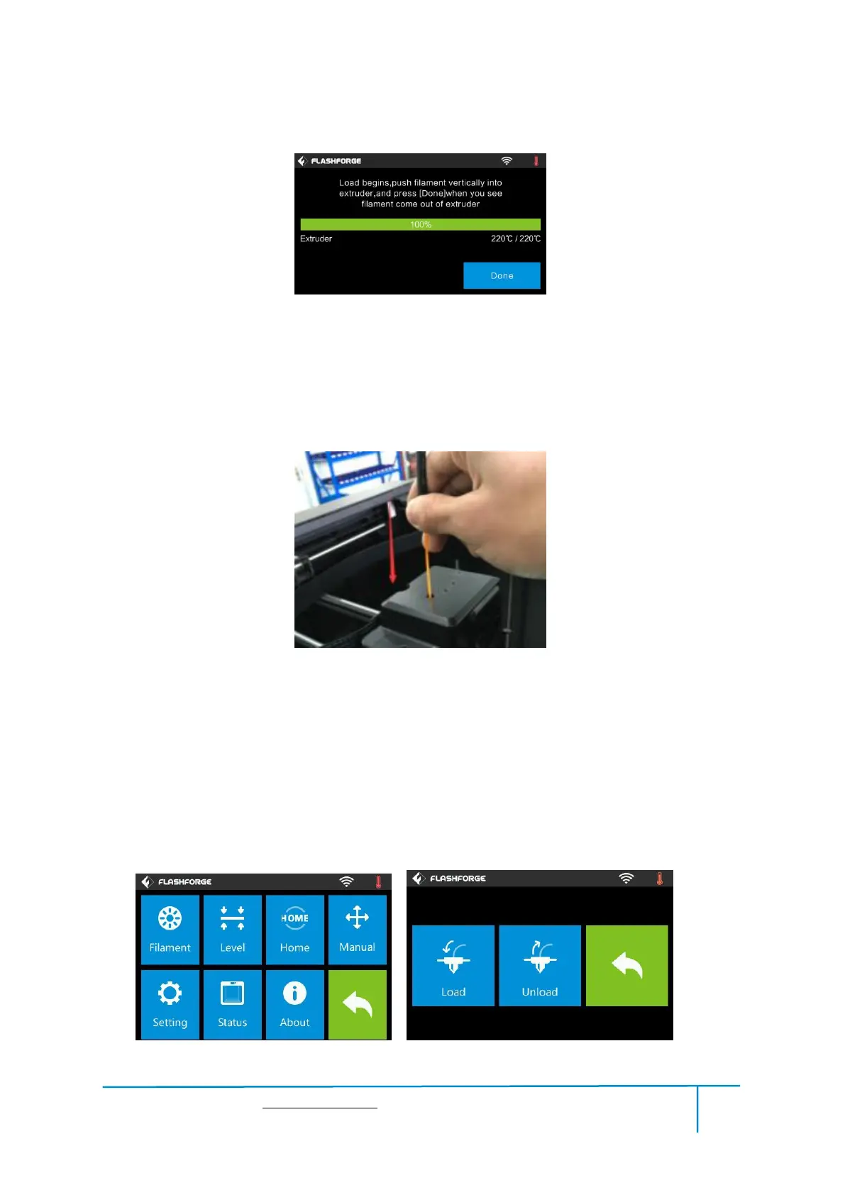 4-9After the extruder’s temperature reaches 220, the printer will sound a beep to