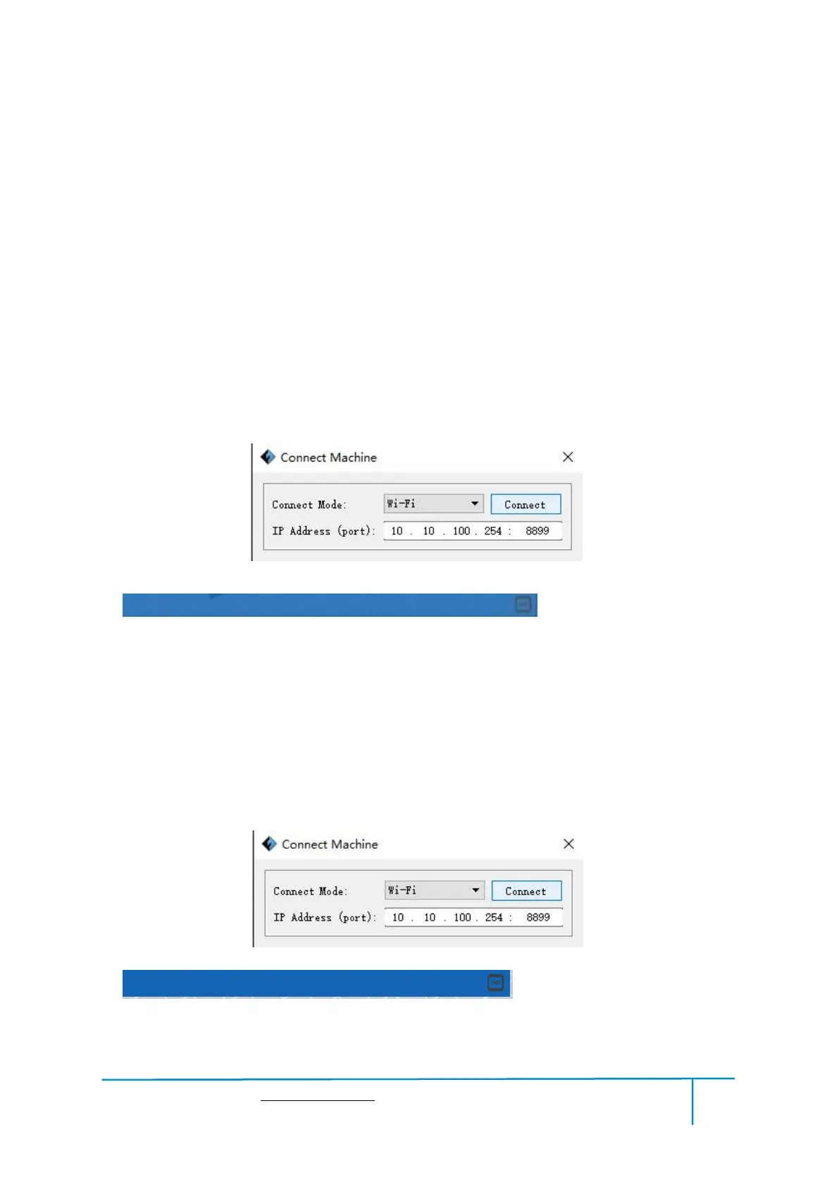 box pops up. You need to select “Wi-Fi” in Connect Mode. Enter into the IP Address