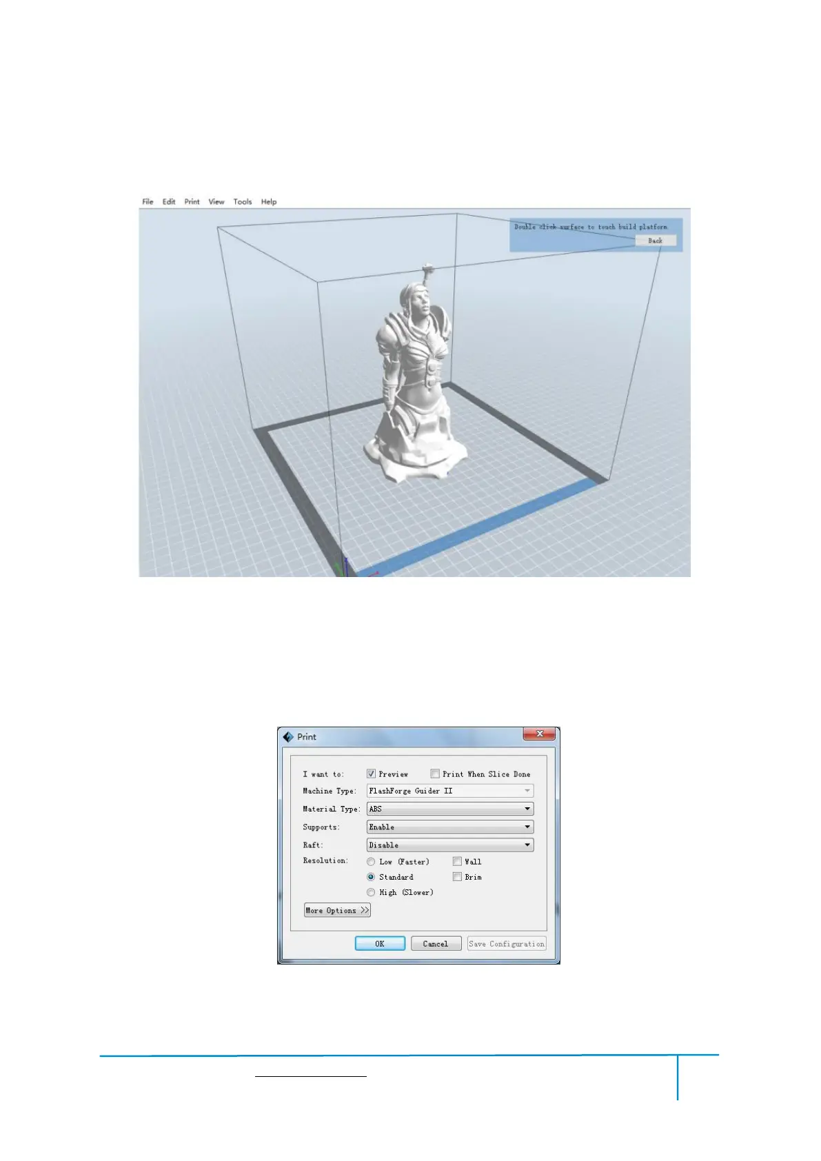 the Platfor m] and [Center] to ensure the model be on the platform.