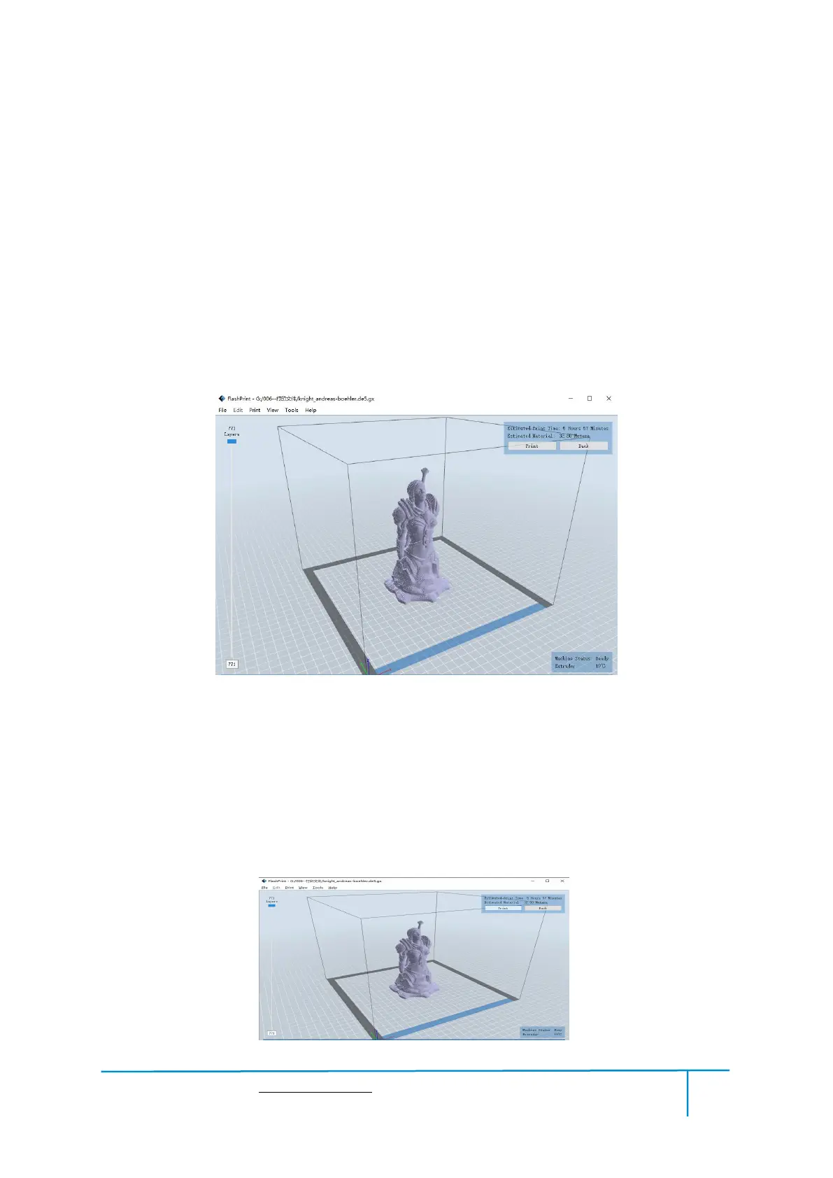 ● Click the [Pr int] button, the PC will transfer the Gcode file to the printer.