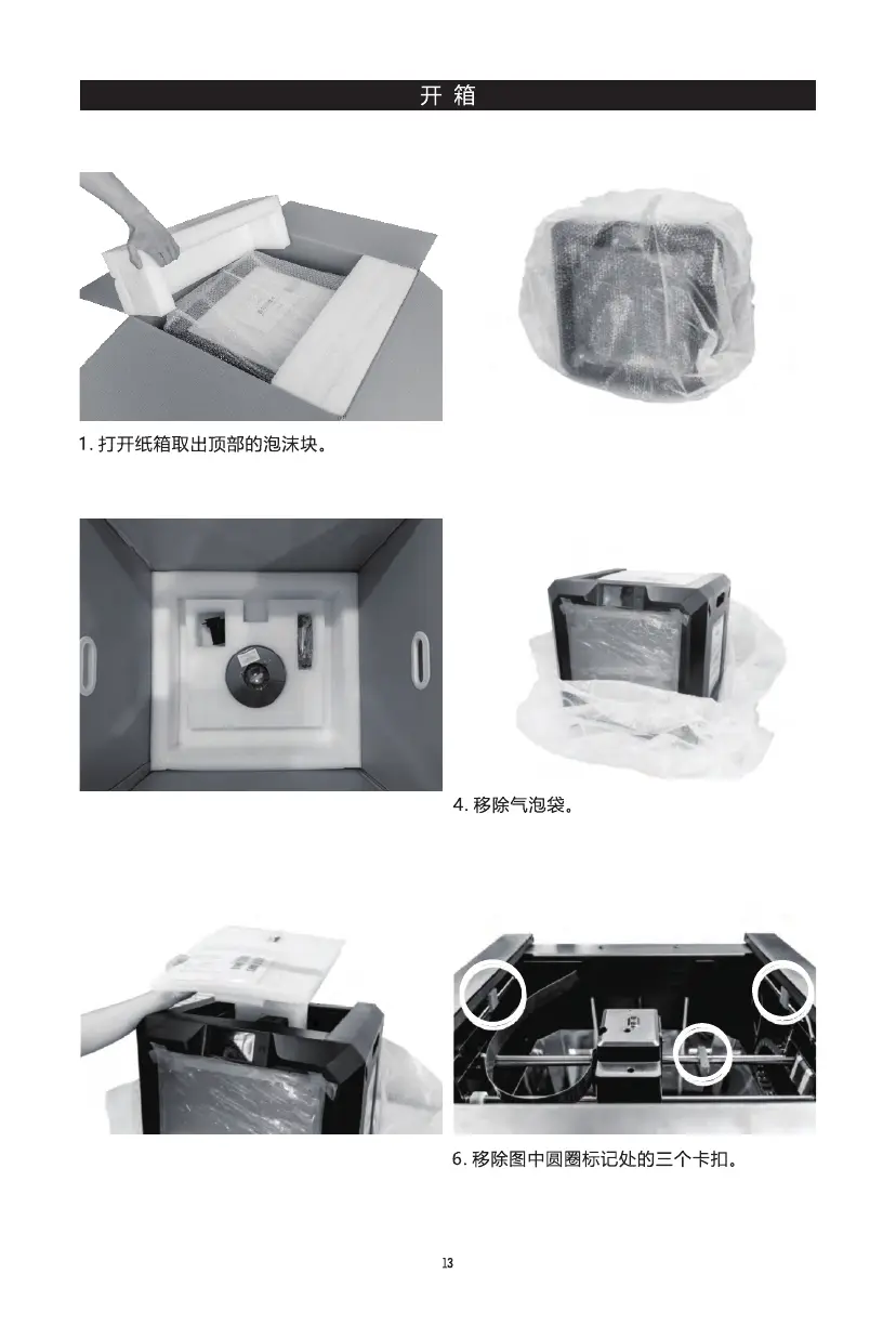 5. 移除打印机顶部泡沫块,上面附带有电源线、