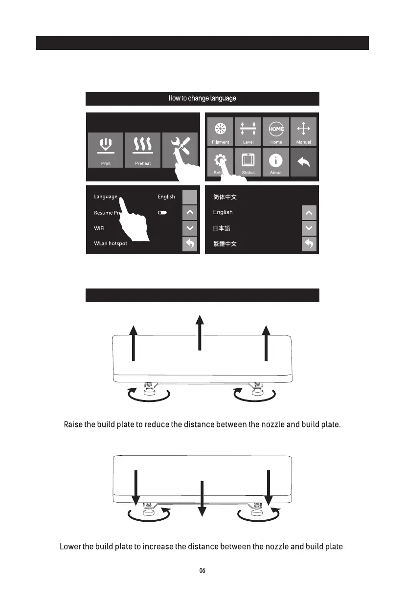 Flashforge Guider IIs - Build Plate Leveling Preparation; Setting Printer Language