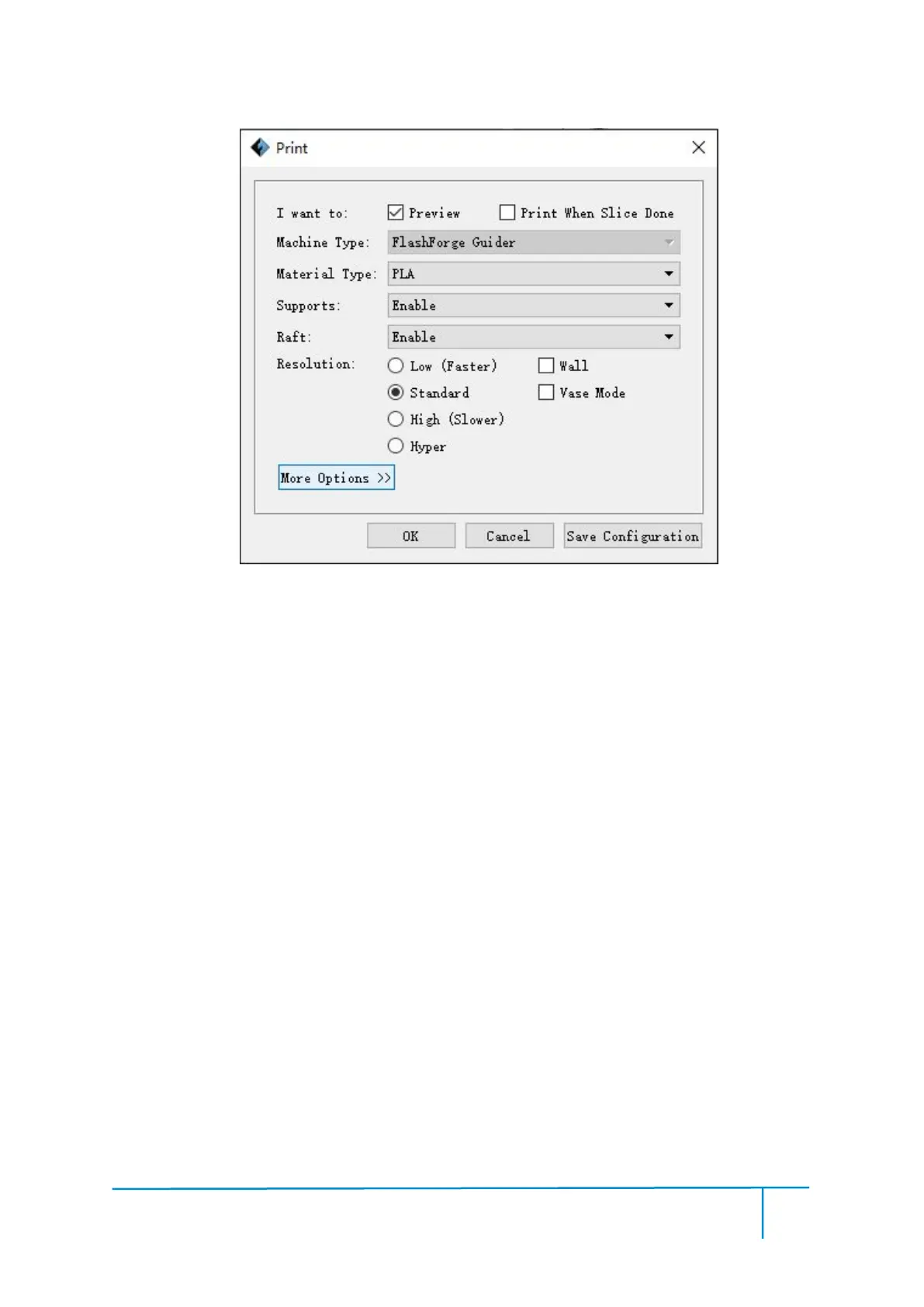 Print When Slice Done: If you print via USB cable, you can check the box, while if