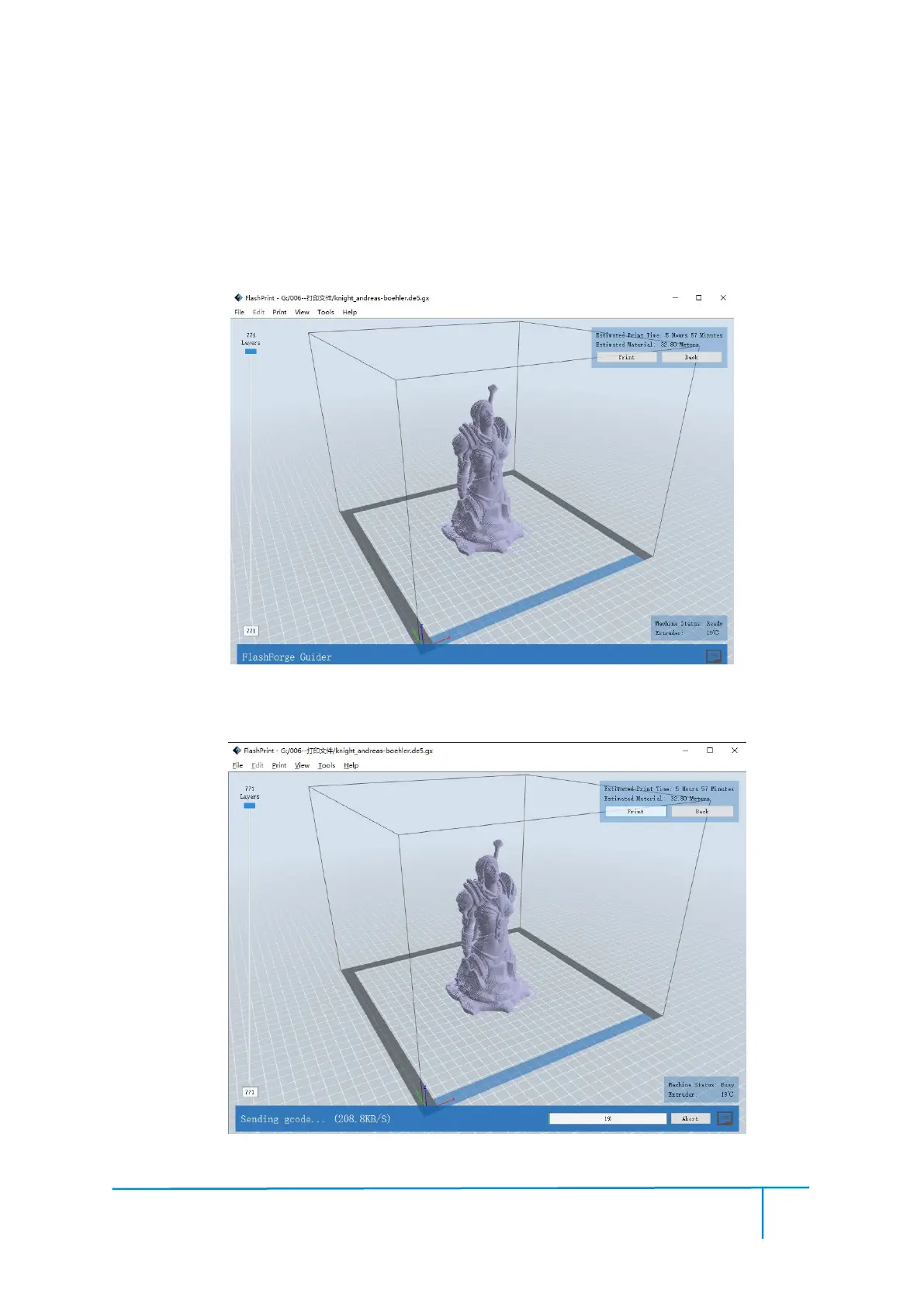 Click the [Print] button, the PC will transfer the Gcode file to the printer.