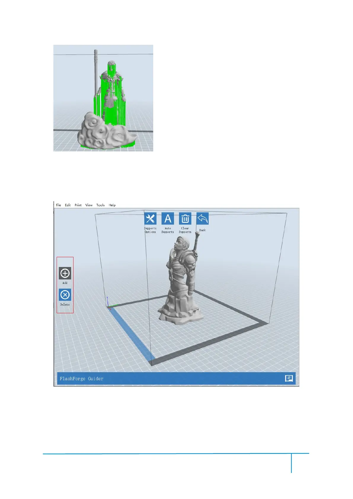 For the experienced 3D printer users, the [Add] and [Delete] buttons are suggested