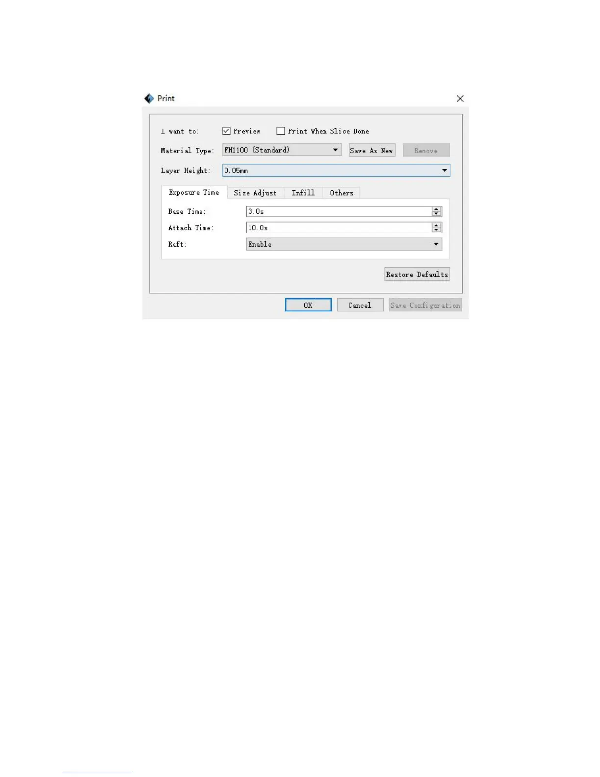 b. Attach time: To set the expose time that solidify the attached a layer of