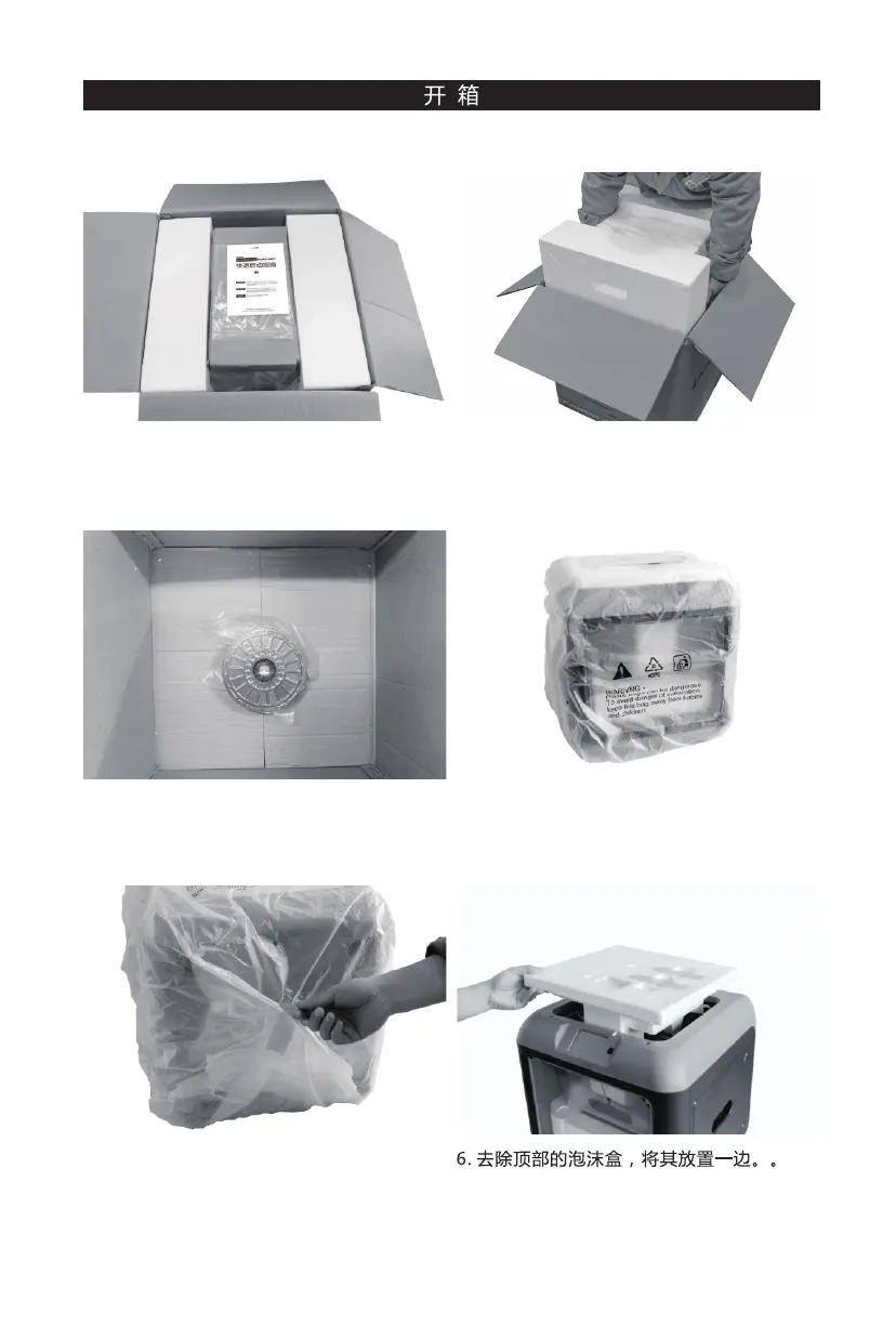 5. 撕除打印机两侧和底部的胶带,去除包装袋。