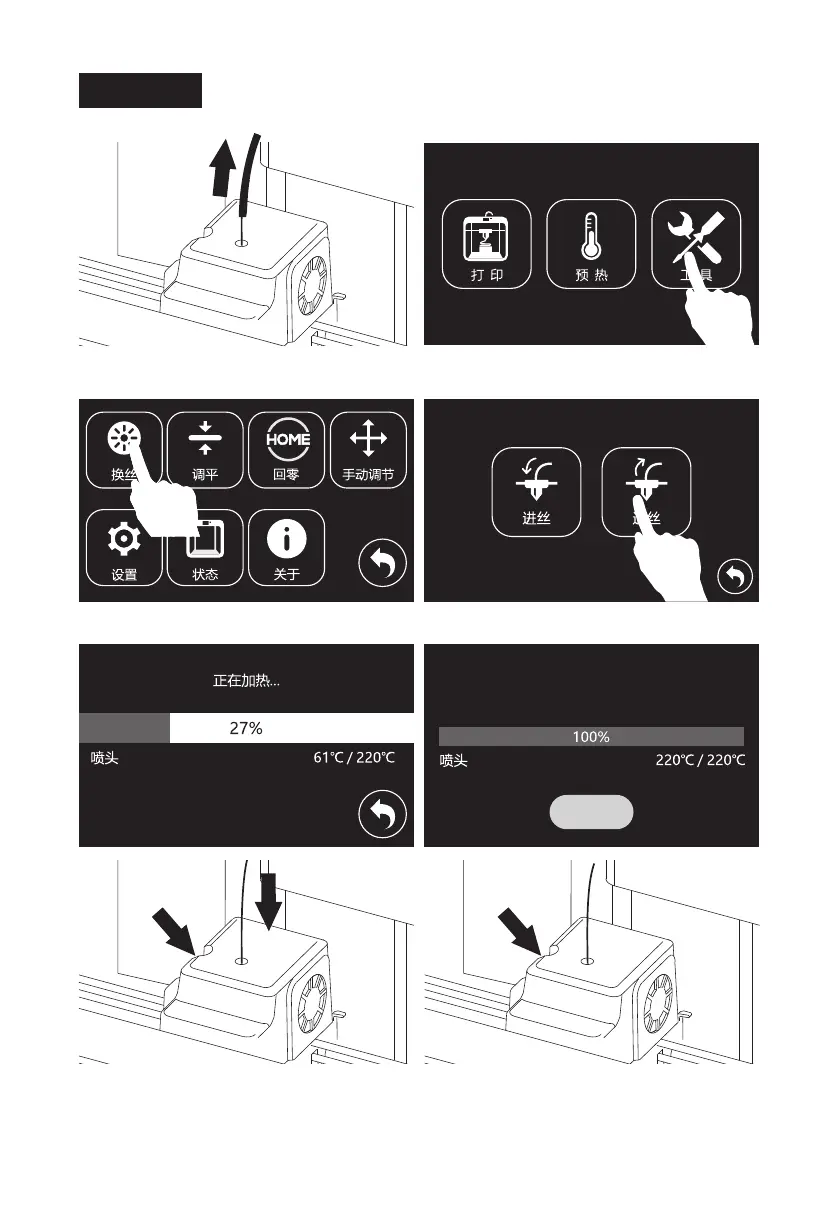 3. 点击[换丝]。 4. 点击[退丝]。