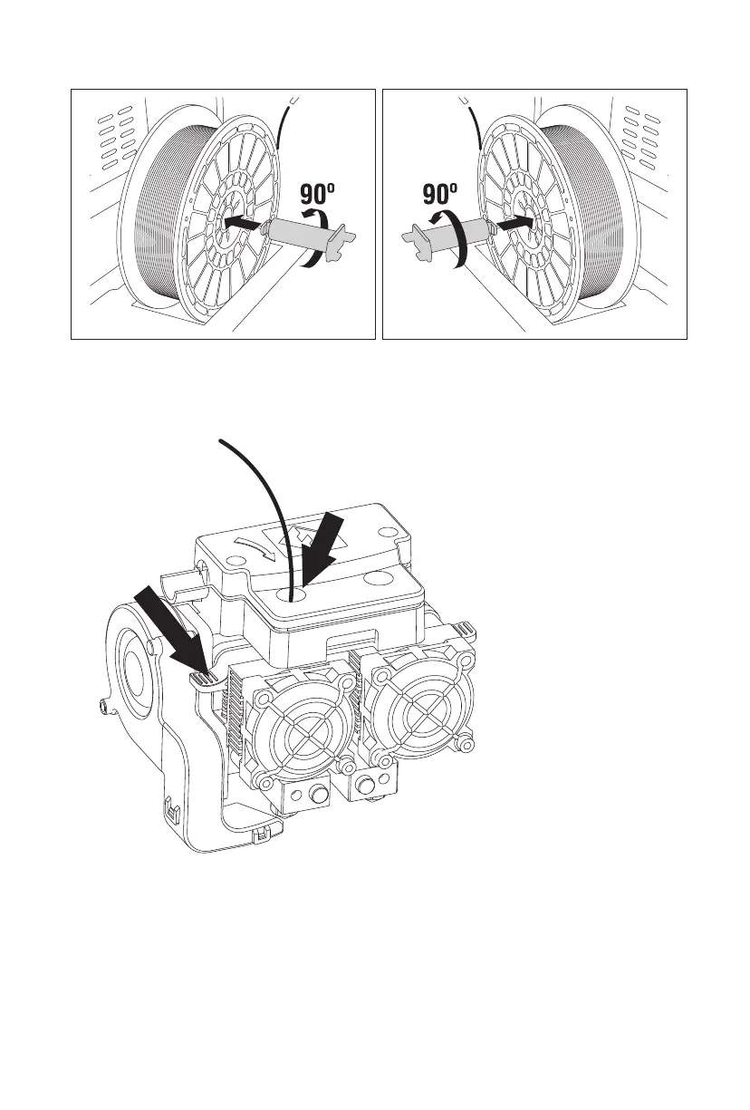 Lock filament on the right side, rotate spool holder clockwise 90°