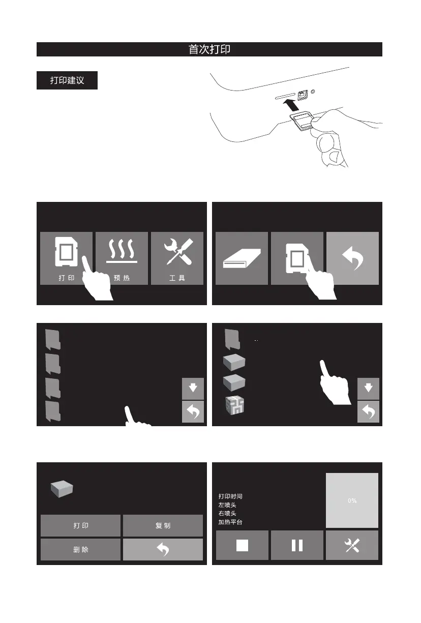 1. 取出SD卡,将SD卡插入打印机右侧的SD卡