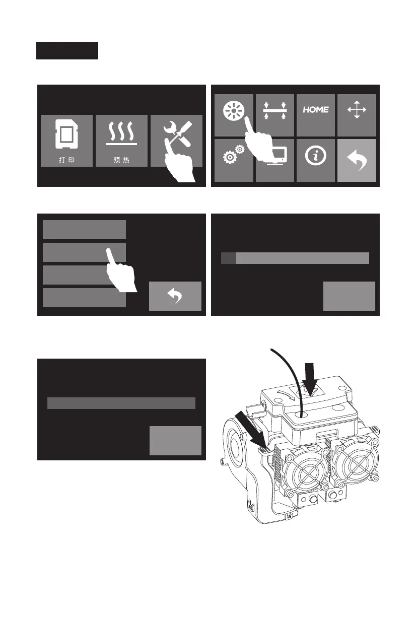 5. 喷头加热到预定温度后开始退丝,按下喷头