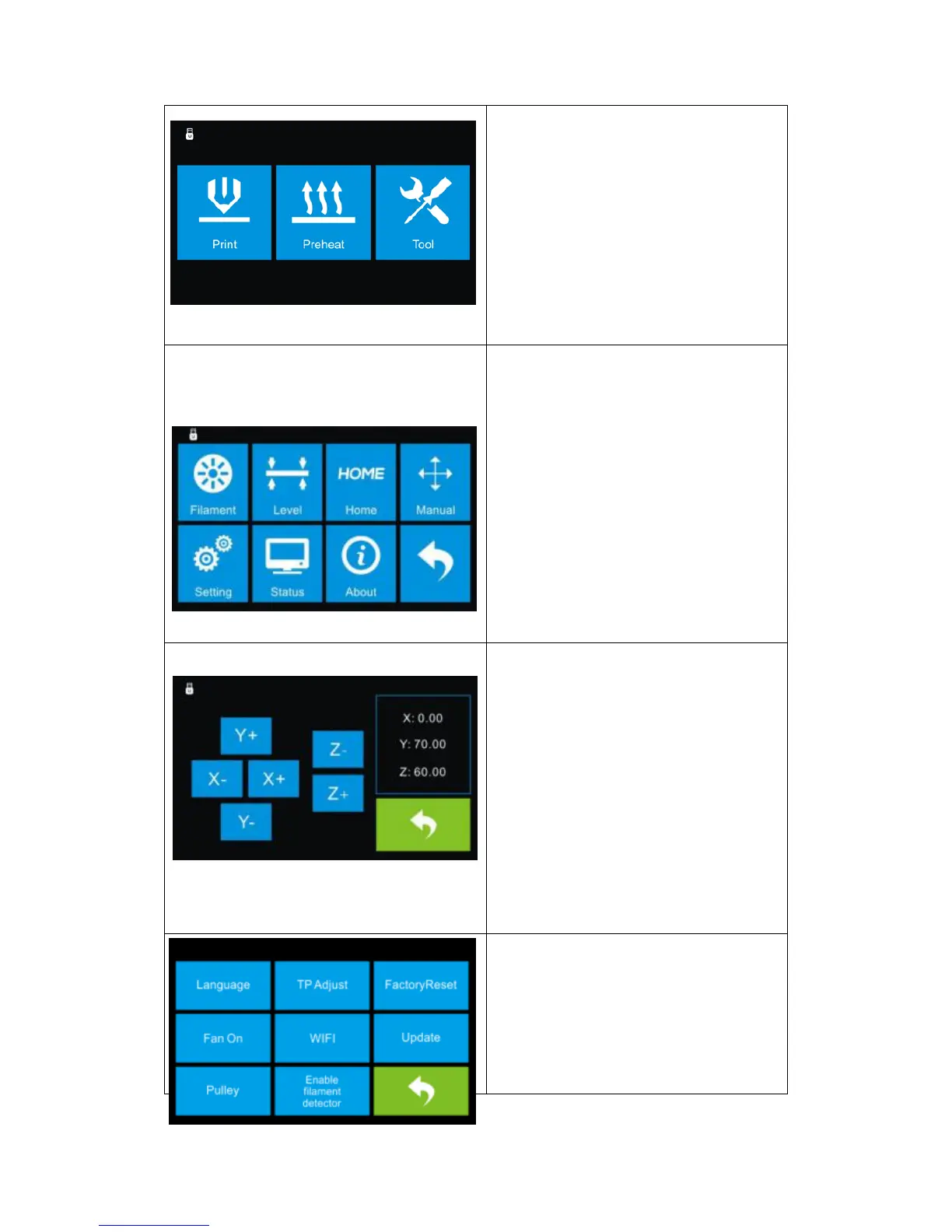 Filament: To load/unload the filament.