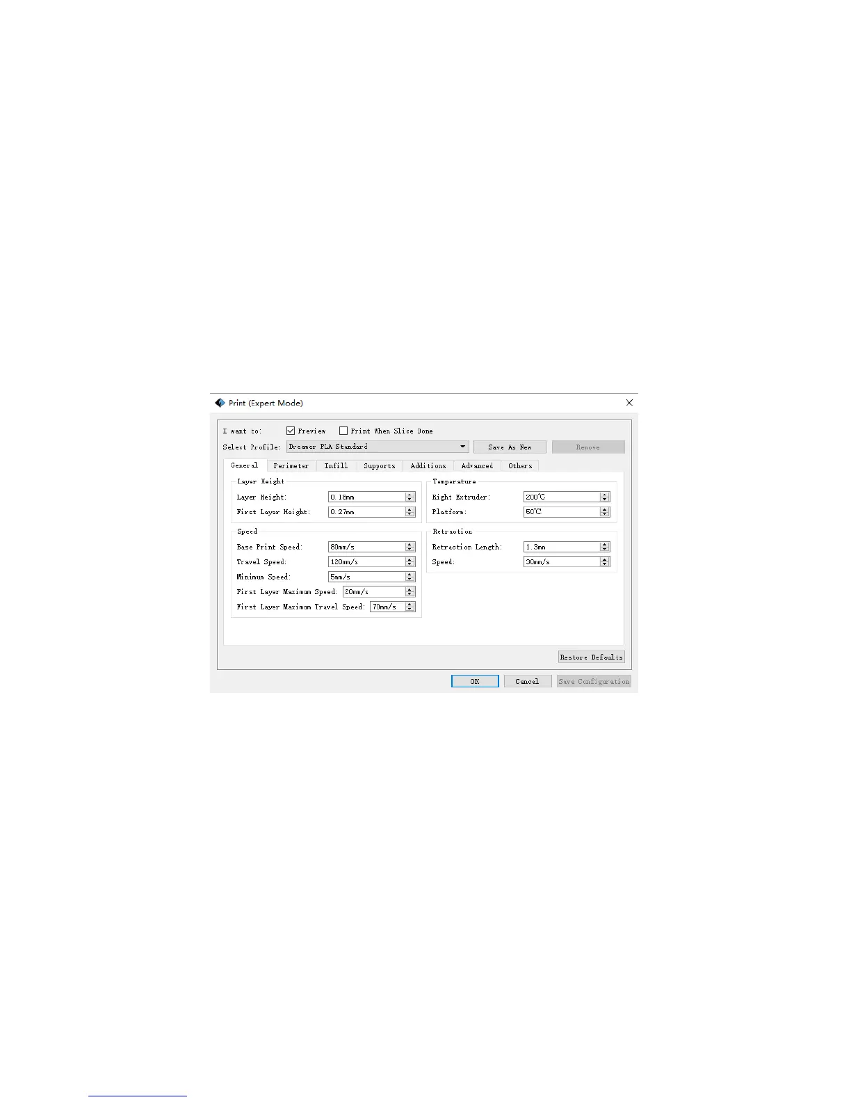 produces low-resolution object but at a high speed. When printing with PLA, users