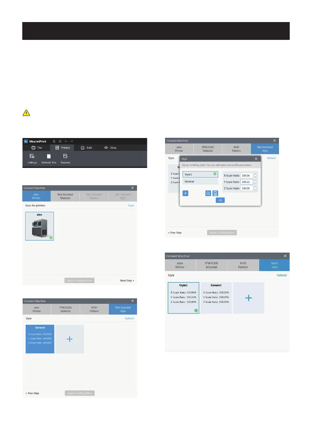 1. Open WaxJetPrint and click setting; 4. Choose the printing mode;