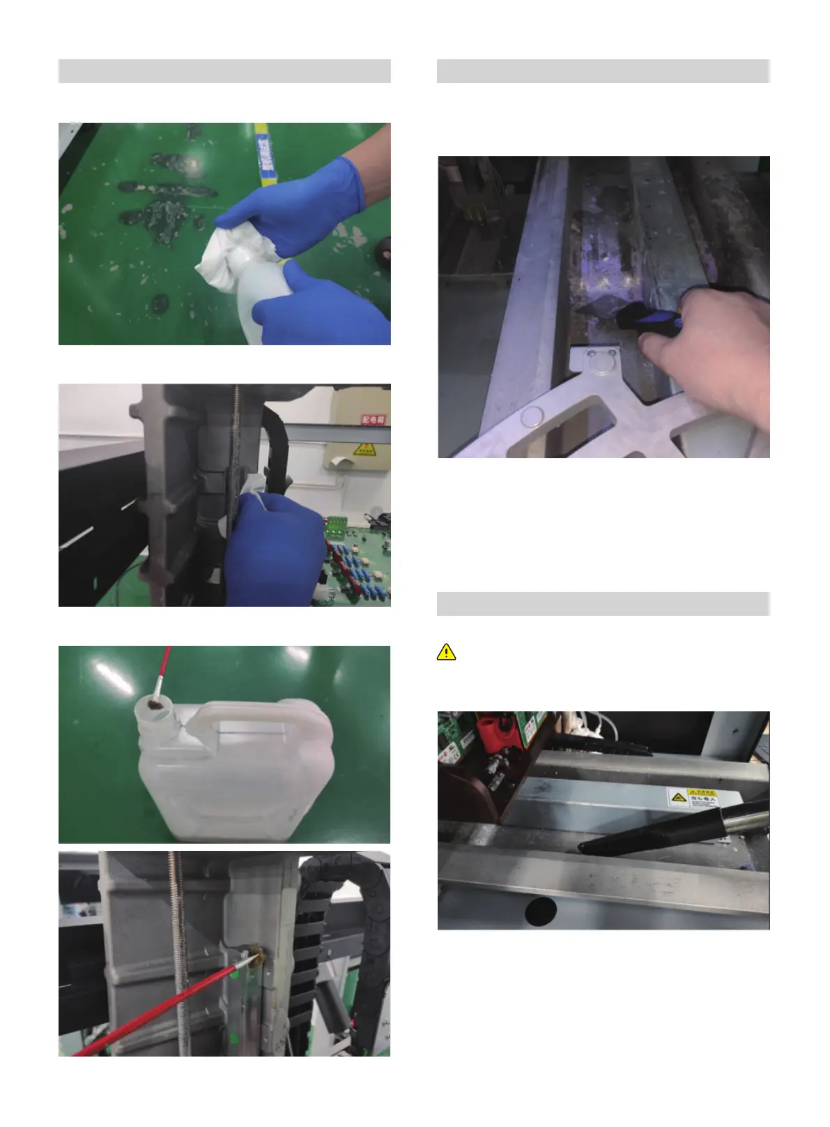 注意:设备内部粉尘过多或者长时间不清理内部粉尘会导致喷
