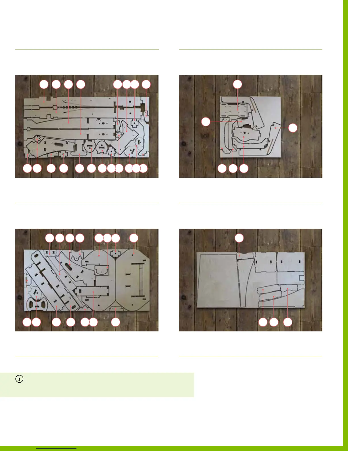 For a complete list of wooden parts, go to “List of the wooden parts” on page 62.