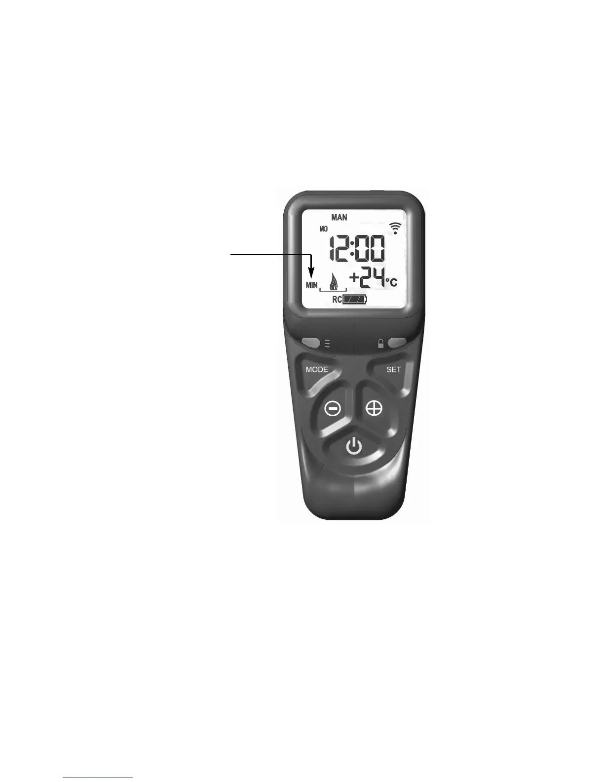 3.8.4 To increase the heat input level of the fire’s burner hold the handset as
