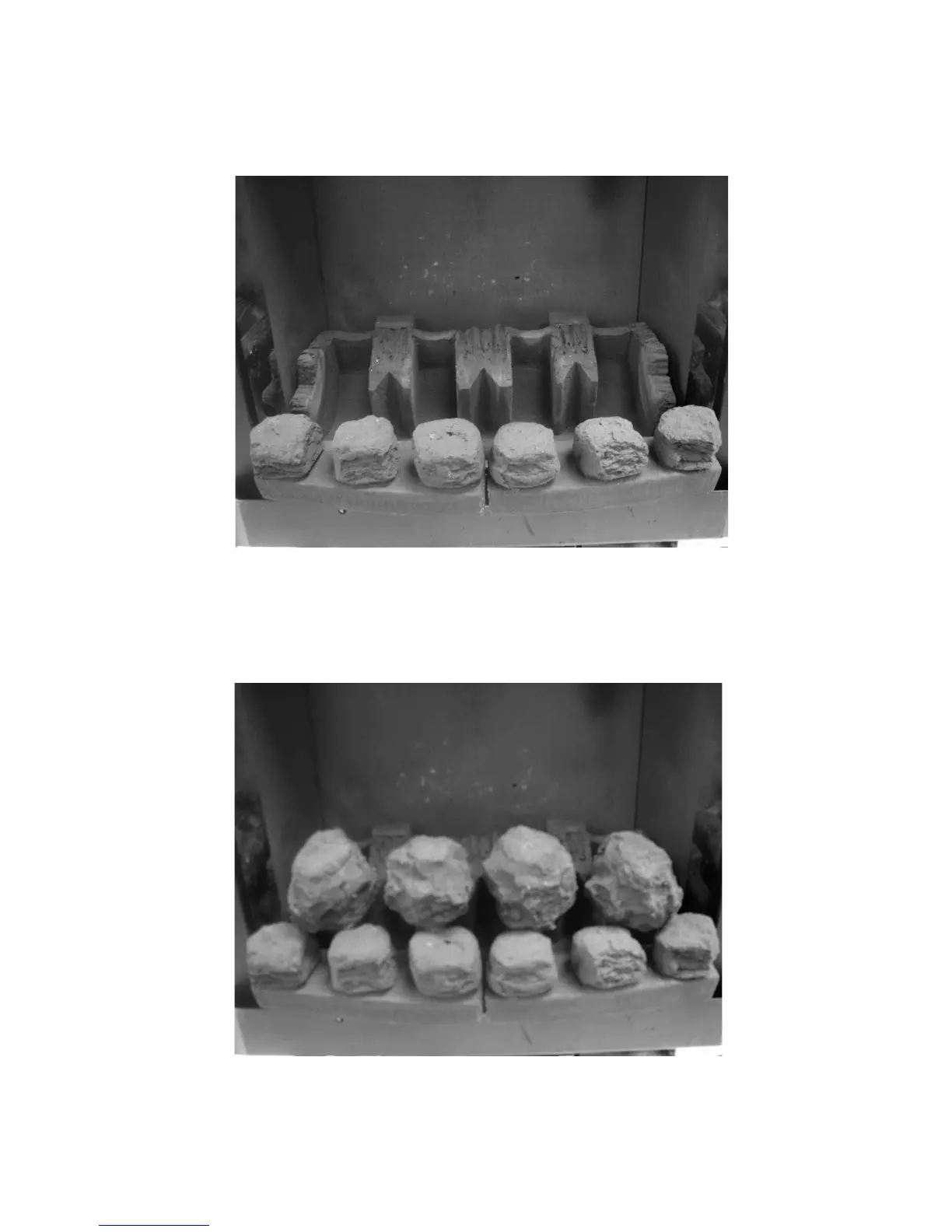 d) Fit four large coals behind the ceramic front rails as shown below in