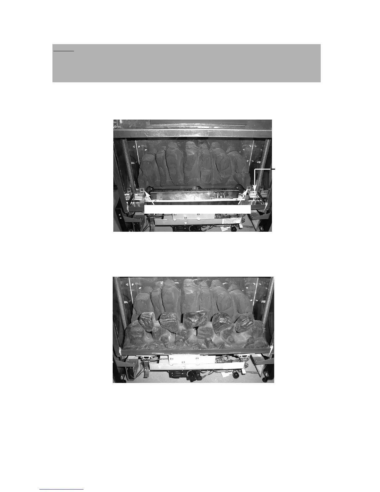 b) Fit the front ceramic coal form in front of the burner, as shown below in