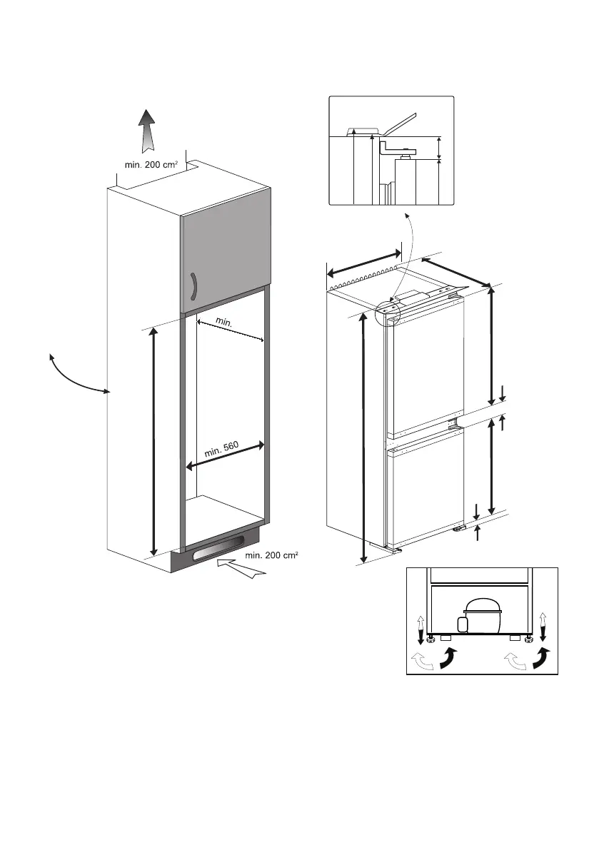 The backwall of the wooden cabinet must be left open completely to kitchen wall in order to allow sufficient air