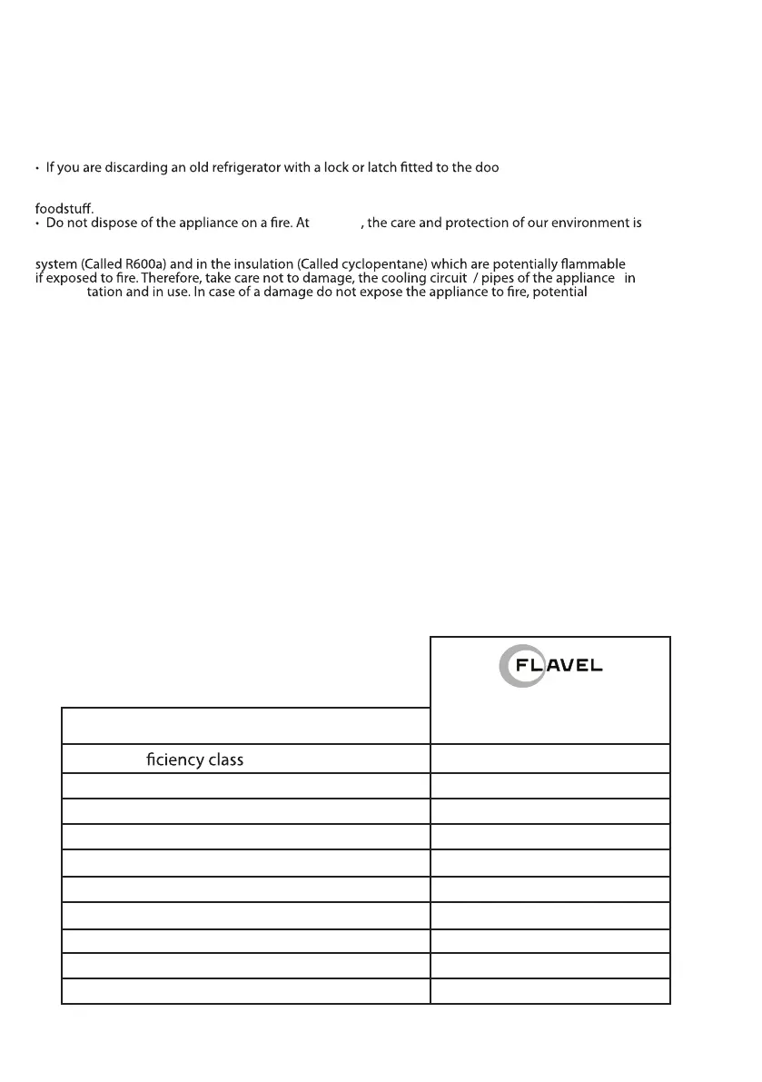 environment friendly. Your appliance contains non CFC / HFC natural substances in the cooling