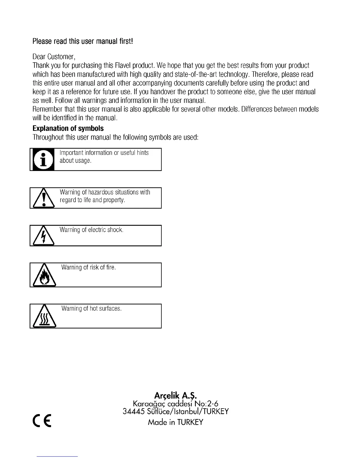Flavel FHLG51W - Explanation of Symbols