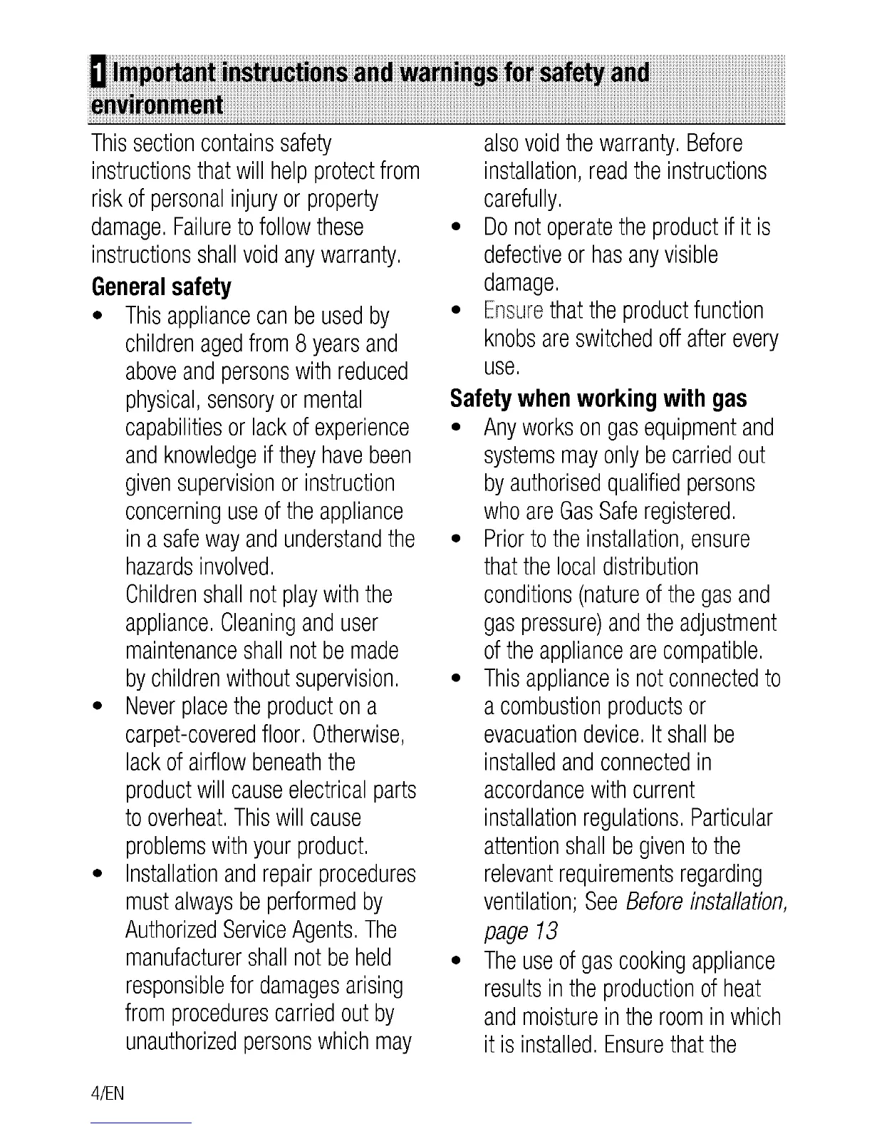 Flavel FHLG51W - Safety and Environmental Instructions; General Safety Guidelines; Safety When Working with Gas