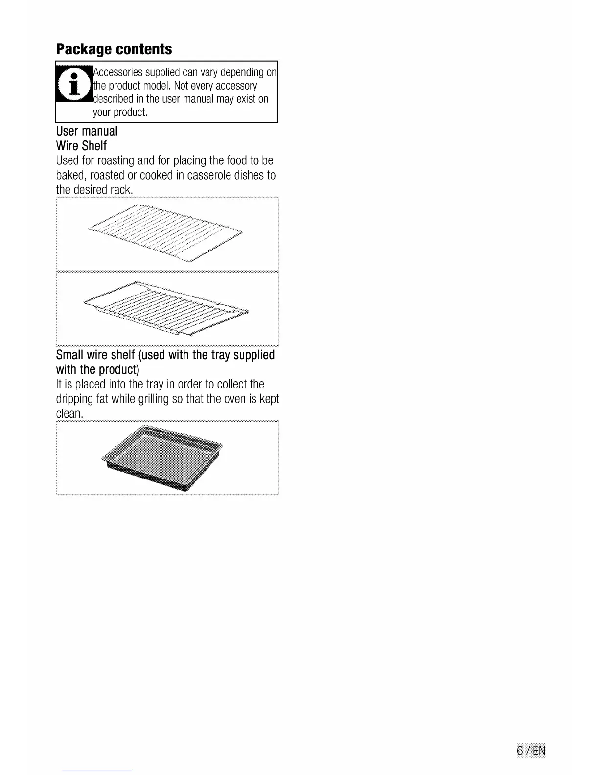 Flavel FSBE50 - Package Contents; Wire Shelf; Small Wire Shelf
