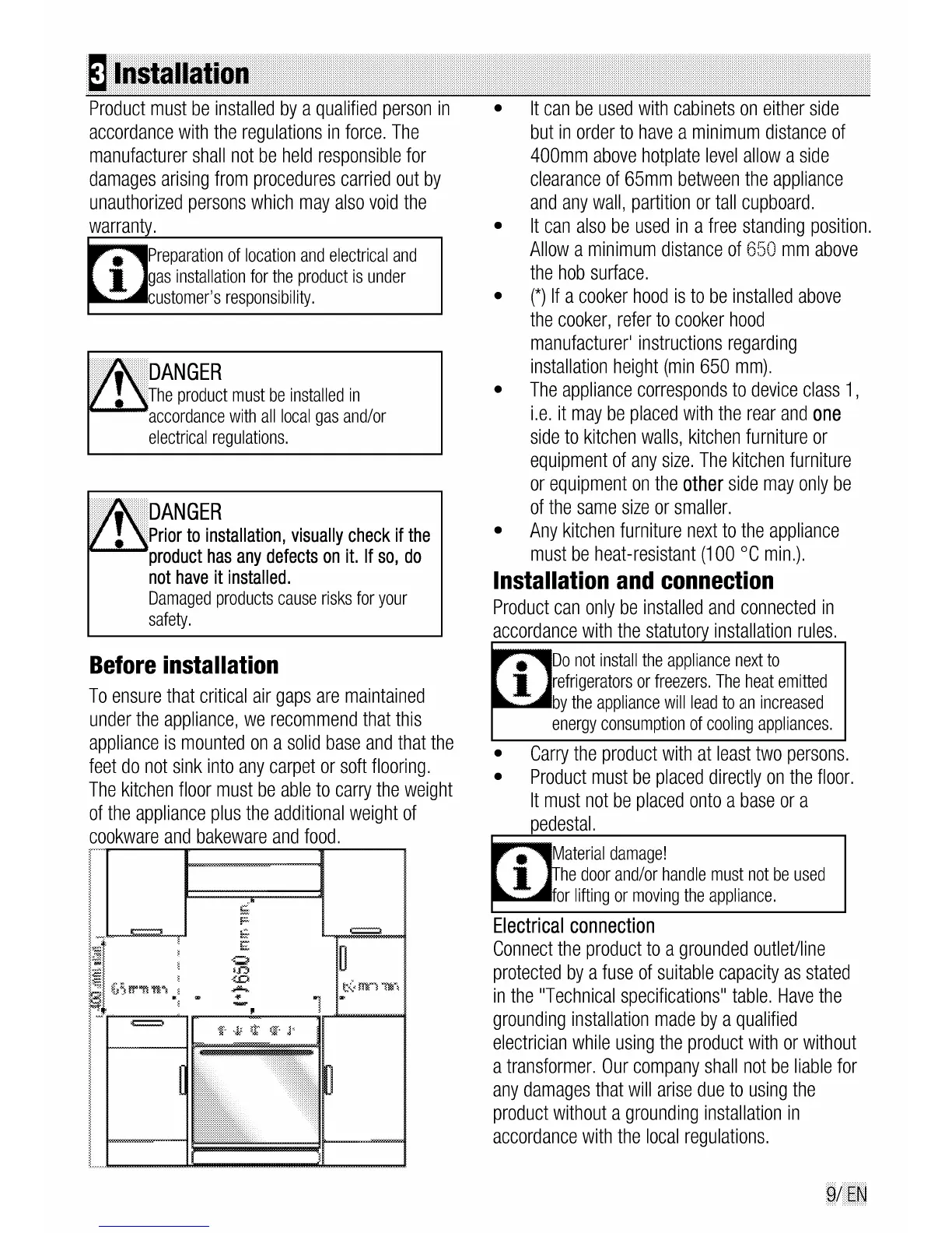 Flavel FSBE50 - Installation Guide; Installation Preparation and Requirements; Appliance Installation and Connection