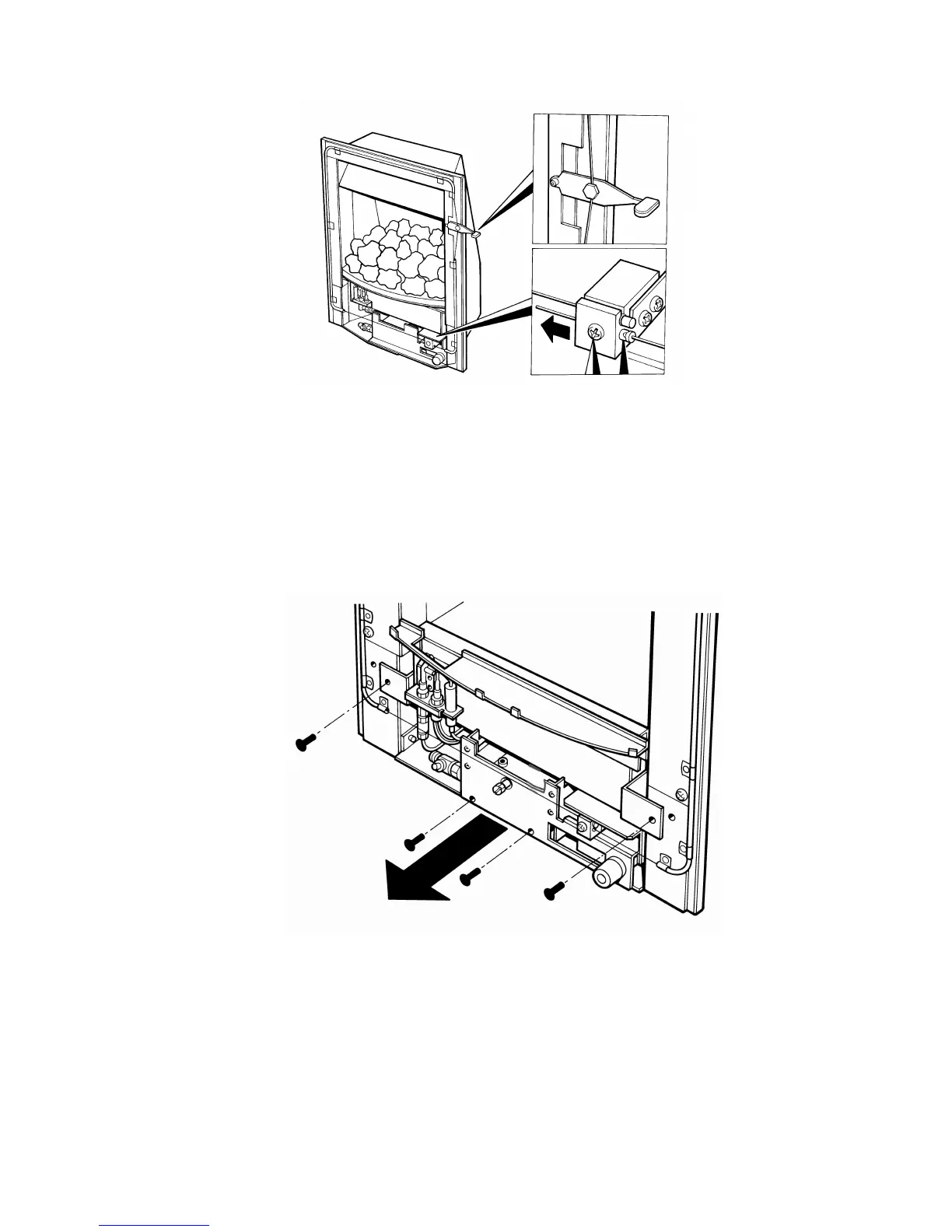 and the two fixing screws at the base of the fire (See fig. 7 below).