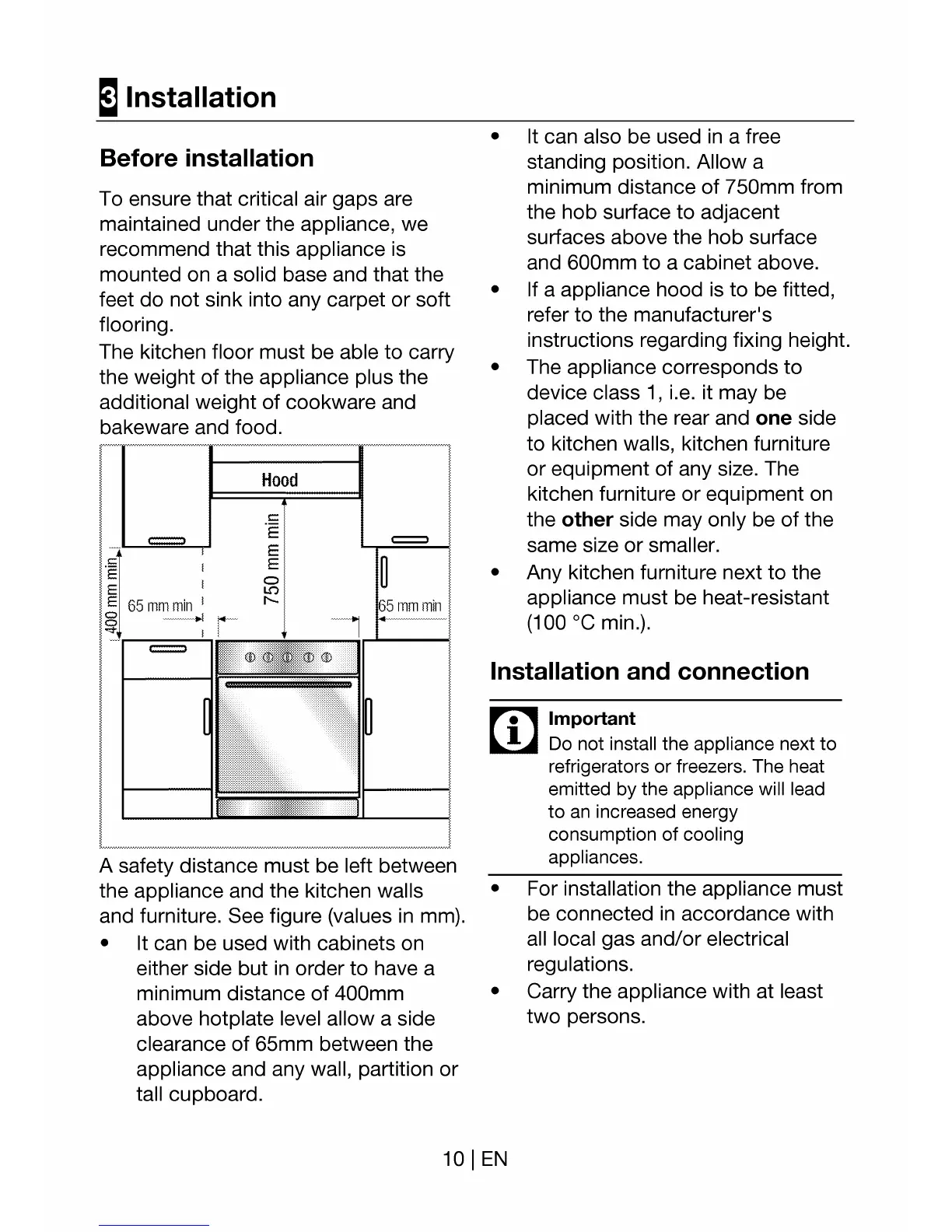 Flavel FSE50 - Installation; Before Installation; Installation and Connection