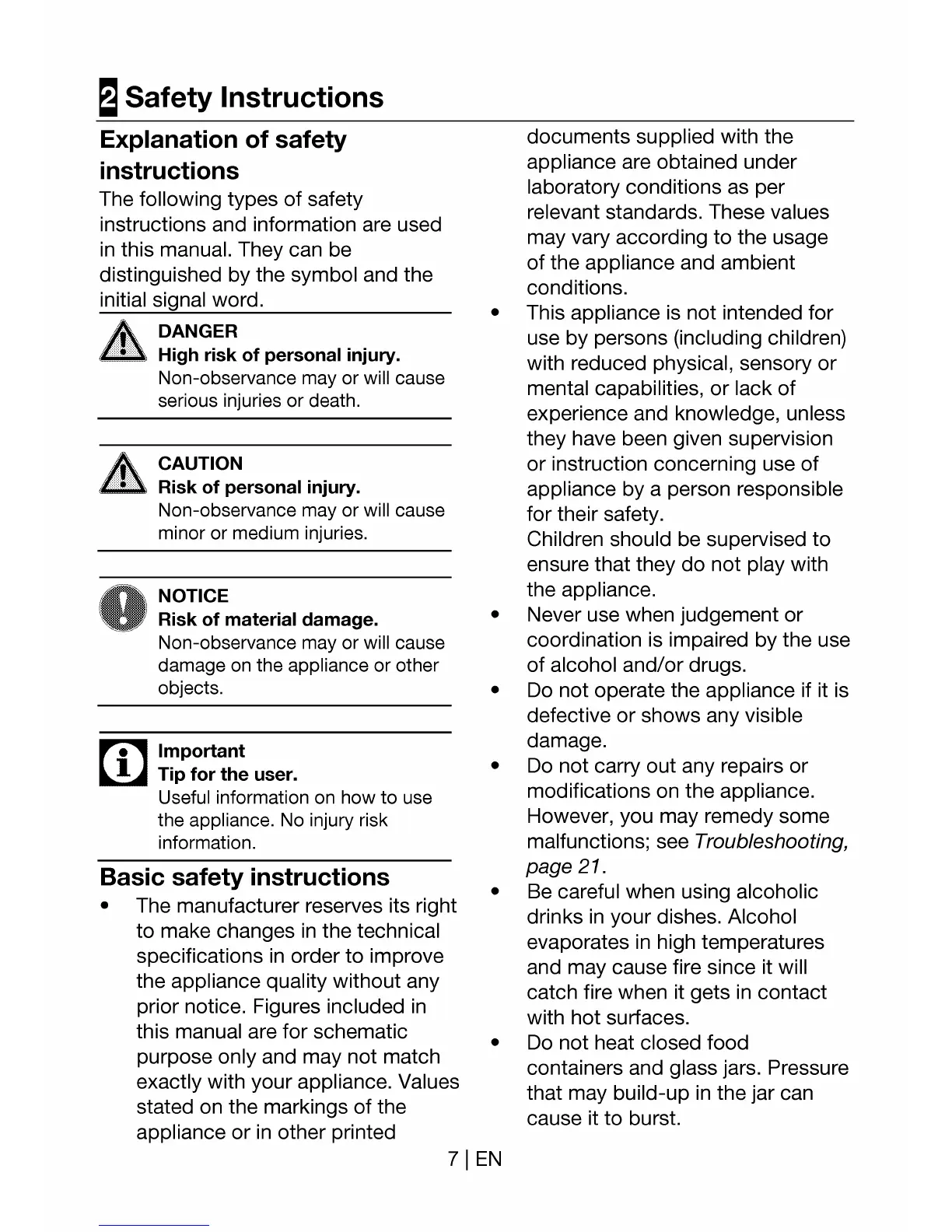 Flavel FSE50 - Safety Instructions; Explanation of Safety Instructions; Basic Safety Instructions