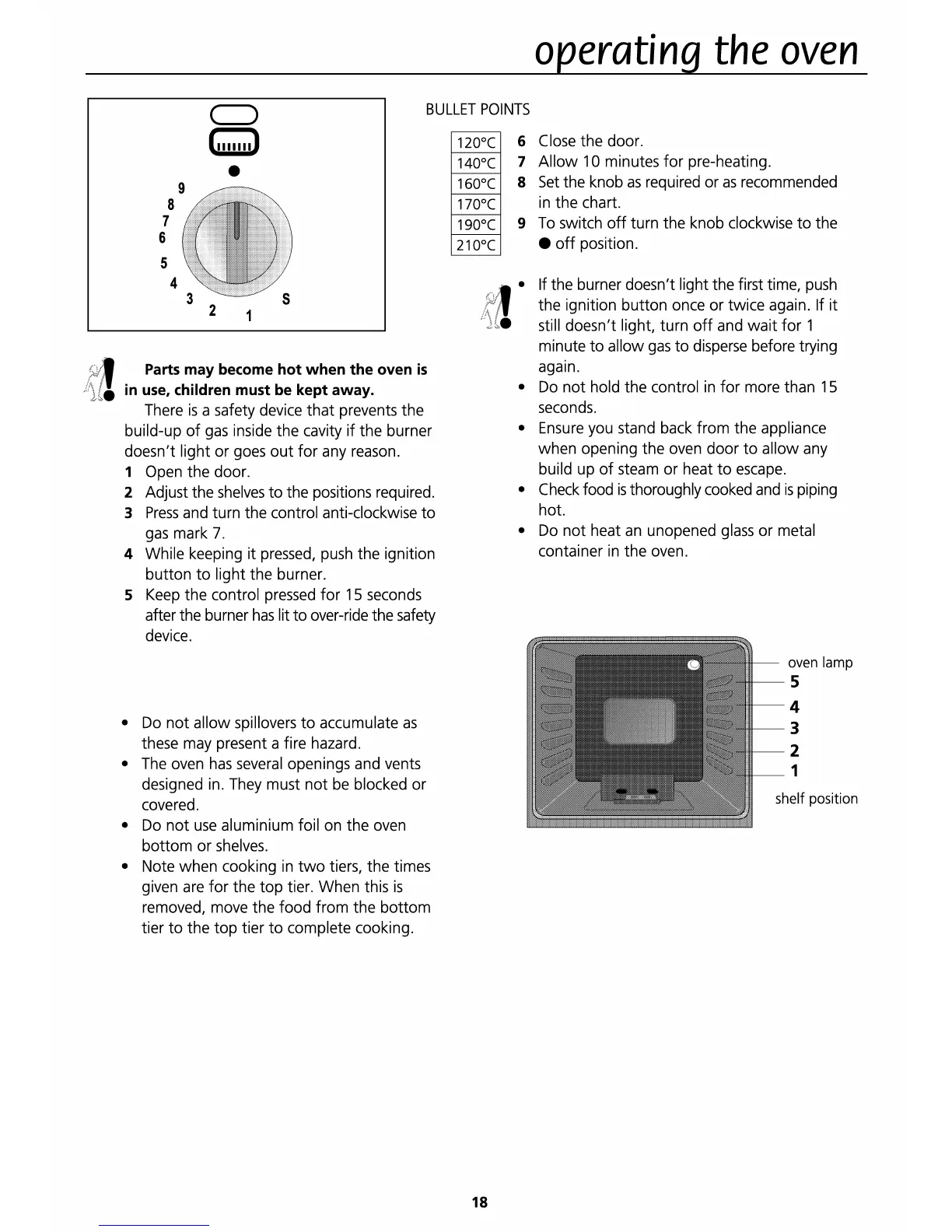 Flavel ML51NDSP - Operating the Oven; Bullet Points