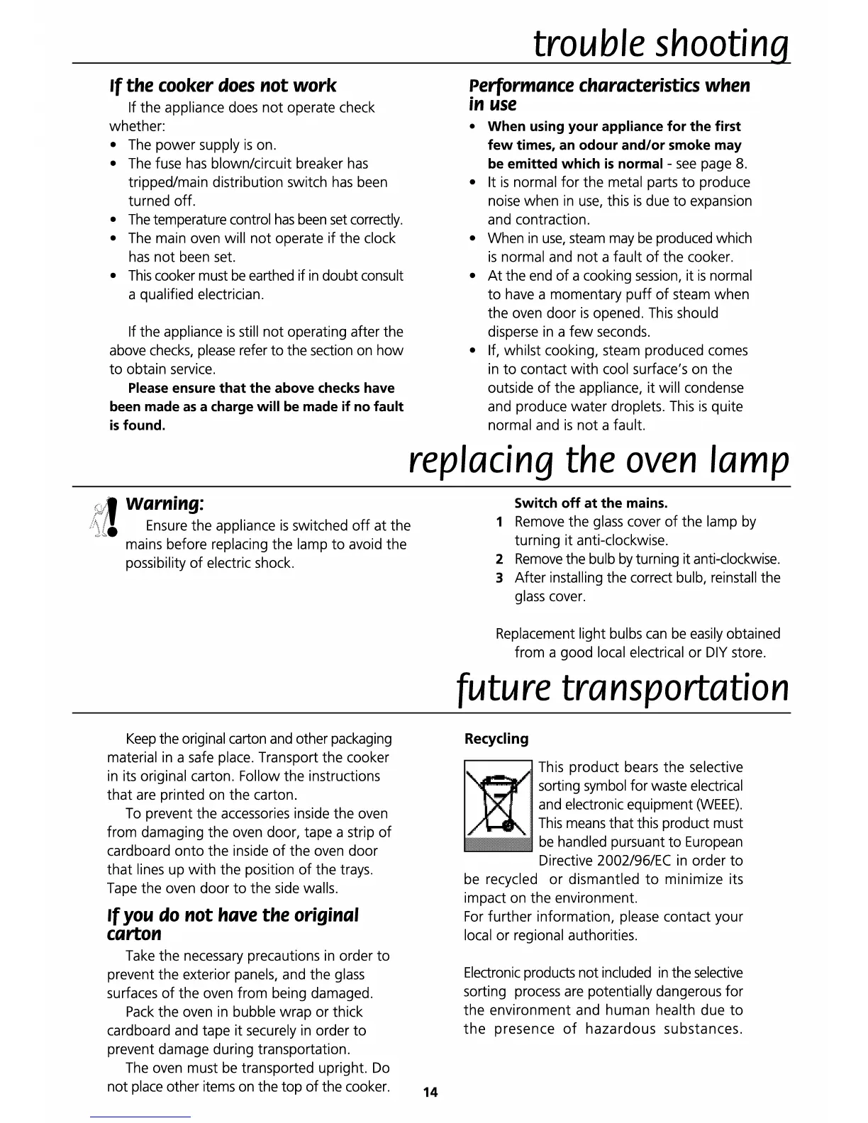 Flavel ML5CDW - Troubleshooting and Maintenance