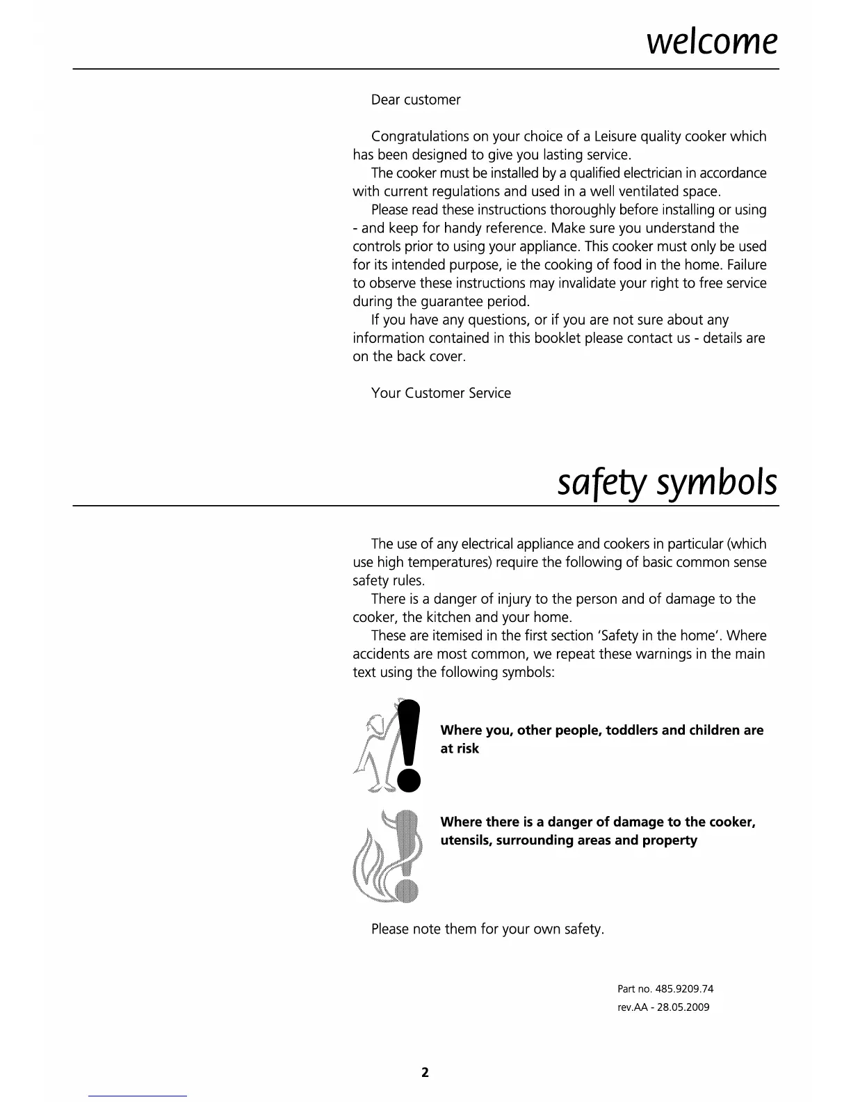 Flavel ML5CDW - Safety Symbols; Risk to People and Children; Risk to Cooker and Property