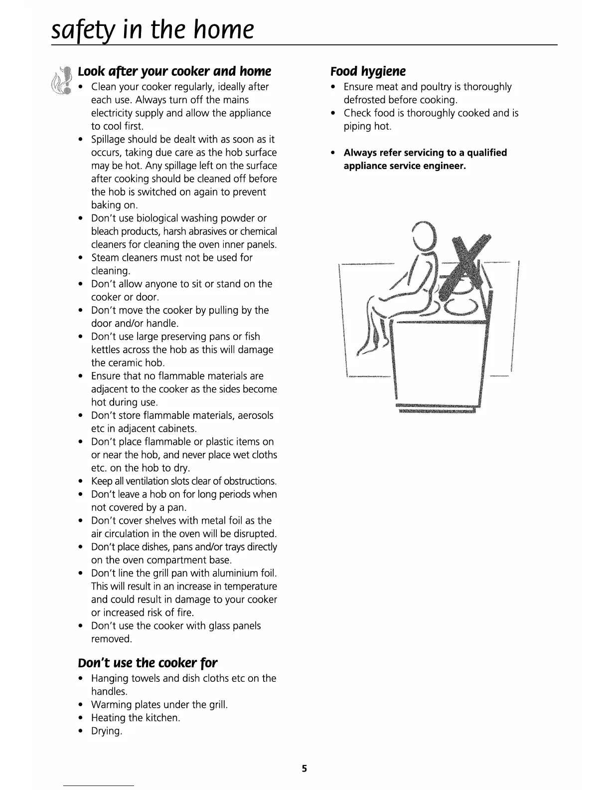 Flavel ML5CDW - Look after Your Cooker and Home; Dont Use the Cooker for; Food Hygiene