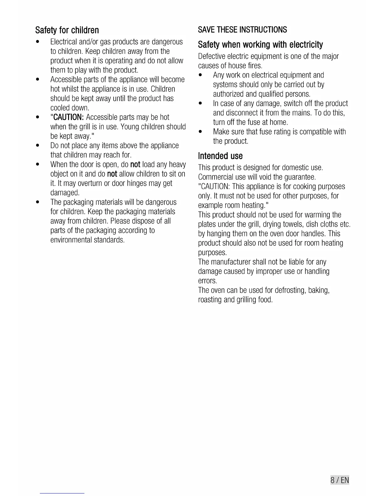 Flavel MLB5CD - Electrical Safety Measures; Product Intended Use and Limitations; Installation Procedures; Pre-Installation Checks and Requirements