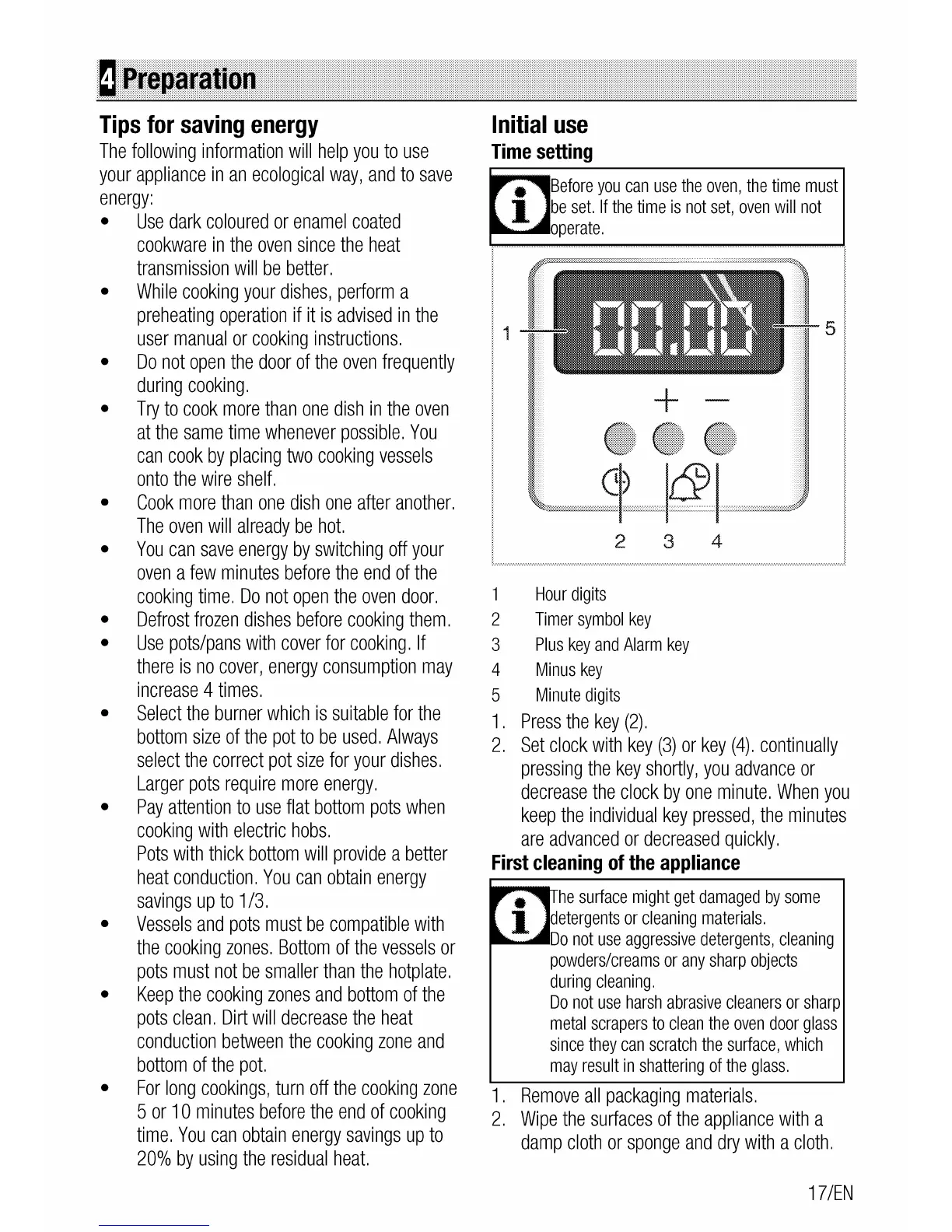 Flavel MLN10CRS - Preparation; Energy Saving Tips; Initial Use and First Cleaning